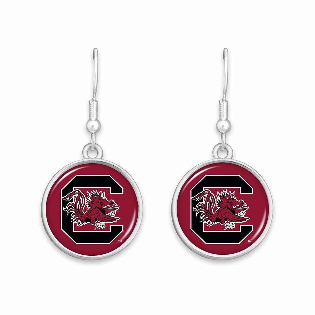 Wear your Gamecocks pride for any occasion with the Women's South Carolina Gamecocks Leah Earrings by From The Heart! These beautiful dangling earrings feature a background of University of South Carolina garnet with a Gamecocks logo hanging from a French hook, perfect for accenting your game day outfits. High-quality and classy, these gorgeous earrings will be your go-to for cheering the Tigers to victory!
