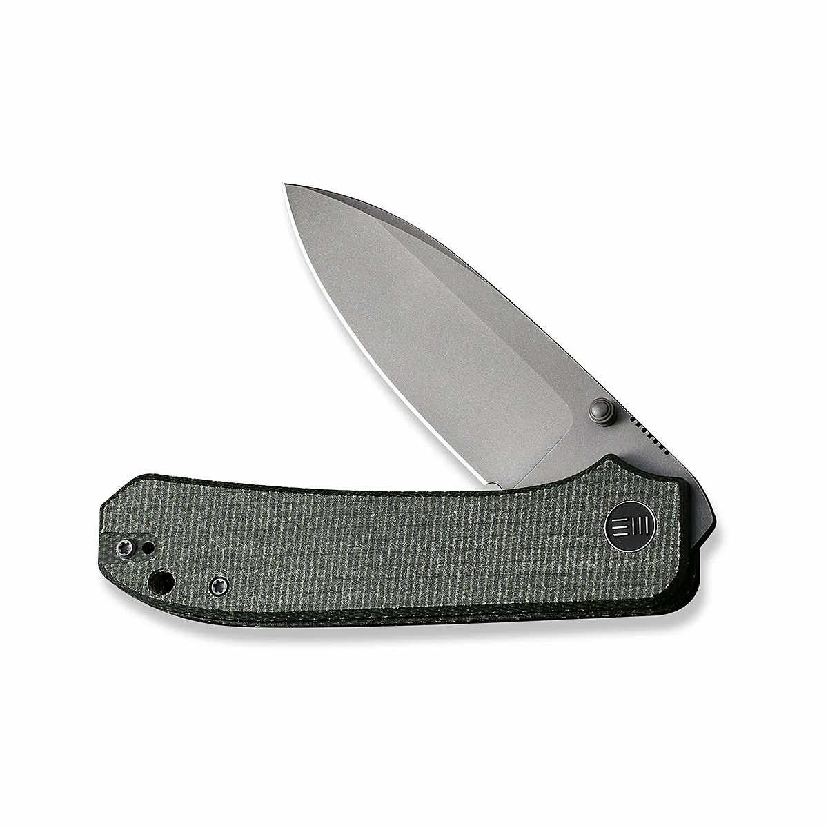 The Big Banter Thumb Stud Knife from WEKNIFE is crafted for everyday carry with a sleek look and a range of versatility. The Drop-Point style blade is made from CPM 20CV steel and has a gray stonewash finish. The handle is made from green Micarta to give you a textured grip that's comfortable and secure. The Big Banter Thumb Stud Knife offers the strength to take on projects in the shop, on the trail, or anywhere else you need a dependable EDC blade.