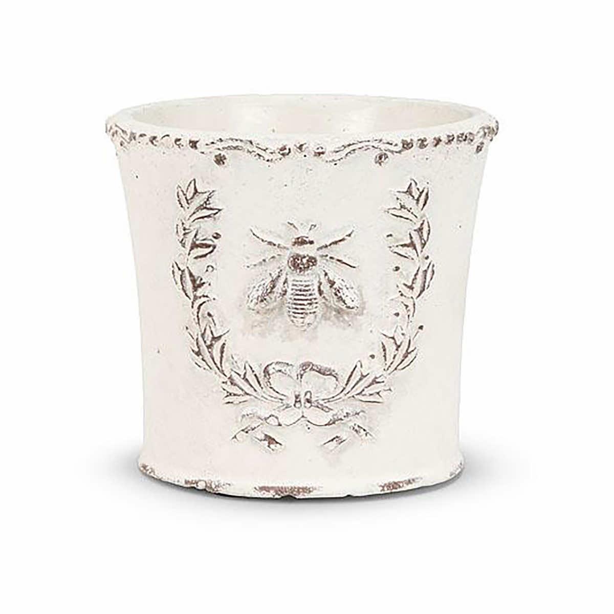 Your green thumb will be buzzing with excitement over the Small Embossed Bee Crest Planter from Abbott! This concrete flower planter has a beautiful, textured design against an antique weathered surface that will bring charm and whimsy to any space, indoors or out. Standing at 3.5 inches tall, this elegant planter is just the ticket for a gorgeous garden!