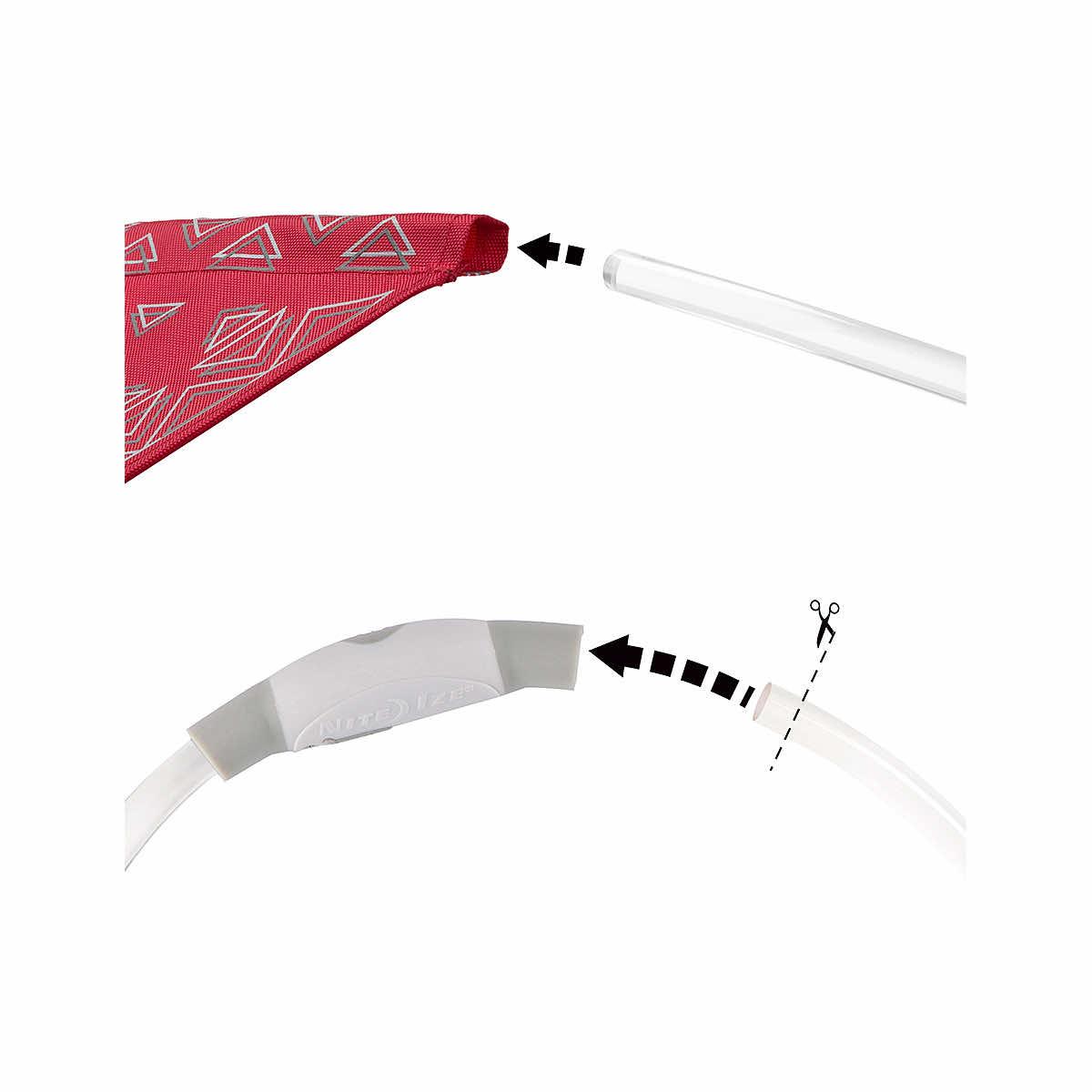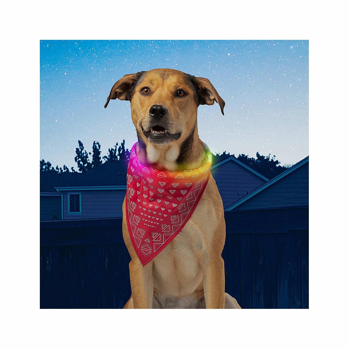 The NiteHowl Bandana Rechargeable LED Safety Necklace from Nite Ize lets your precious pup shine in style from the sidewalk to the campsite. The machine-washable bandana is great for adventurous pups and features a fun, passive-reflective pattern for added nighttime visibility. A sewn-in opening along the top of the bandana allows you to thread the LED necklace on, ensuring it always stays attached through zoomies and playtime. Featuring rechargeable Disc-O Select technology, choose from 3 colors - red, green, and blue - or color-changing Disc-O mode for a unique color blend. NiteHowl is fit fur any pup with its cut-to-size design—just snip the end for a perfect fit from 12 to 27 inches (30.5cm – 68.6cm). With easy push-button operation and weather resistance, NiteHowl recharges in 1.5 hours with a micro USB cable (not included).