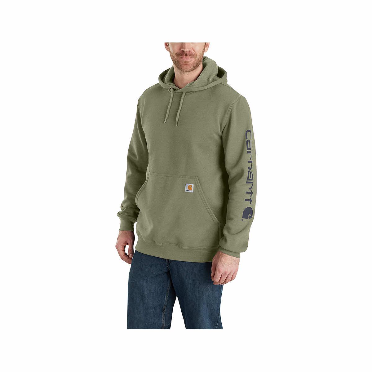 The classically stylish Men's Loose Fit Midweight Logo Sleeve Graphic Hoodie from Carhartt is just what your workwear wardrobe needs! This high-quality hooded sweatshirt has triple-stitched seams and ribbing at the cuffs and waist for increased durability, so it can take anything you throw at it. Iconic design means that this pullover sweatshirt will go with anything in your closet and lend casual coolness to your outfits. This hoodie will be a faithful companion for years to come!