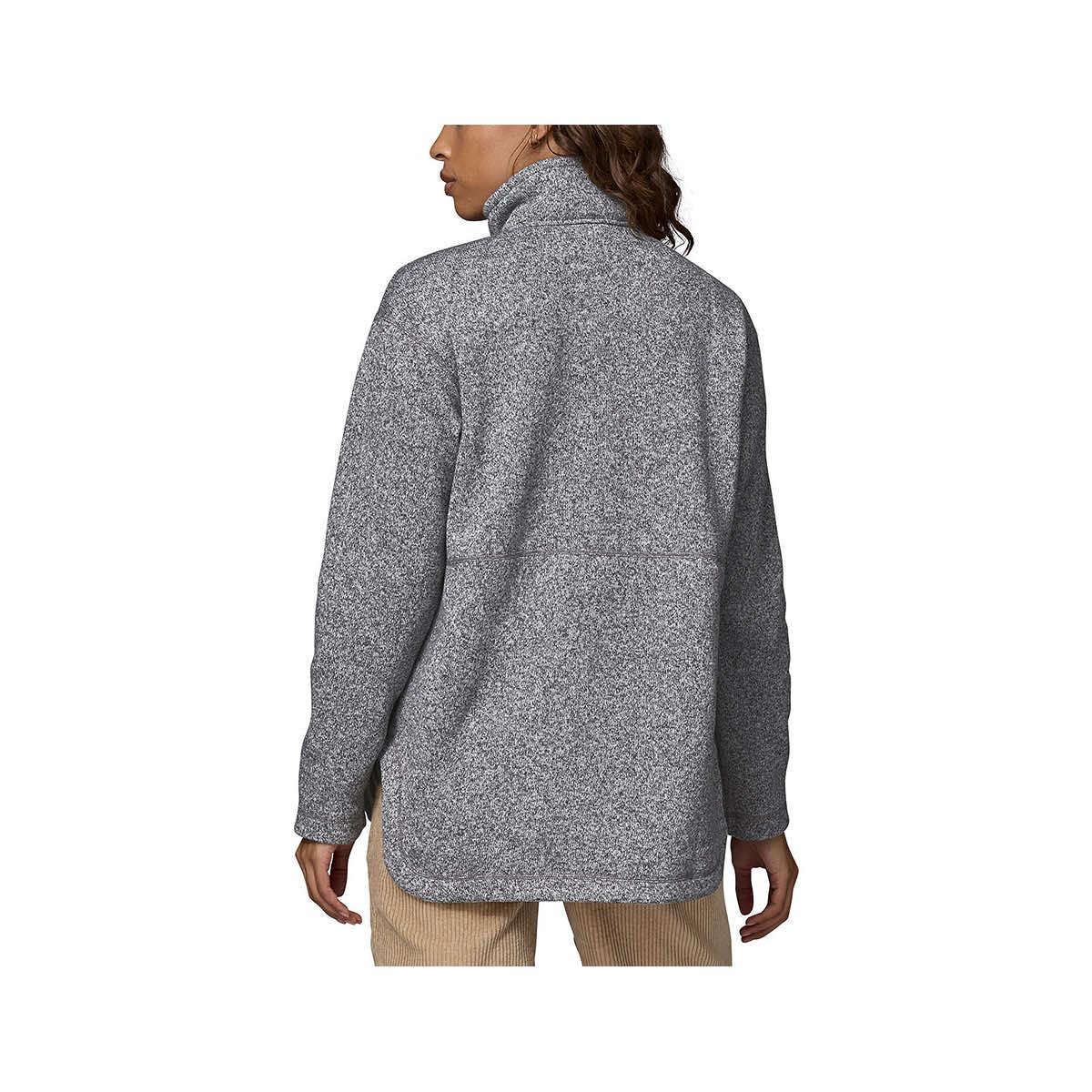 Bundle up and stay toasty with the Women's Better Sweater Oversized Fleece Pullover from Patagonia. Made from a recycled polyester knit fleece, this pullover has a sweater-knit face with a fleece interior that offers comfort and warmth all season long. The half-zip front optimizes temperature regulation to find that just-right feel for chilly weather. The marsupial pocket is a perfect hand warmer and storage for your essentials. Features like dropped shoulders, a long pullover length, and a saddle-style hem provide versatility and function for years to come.