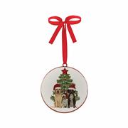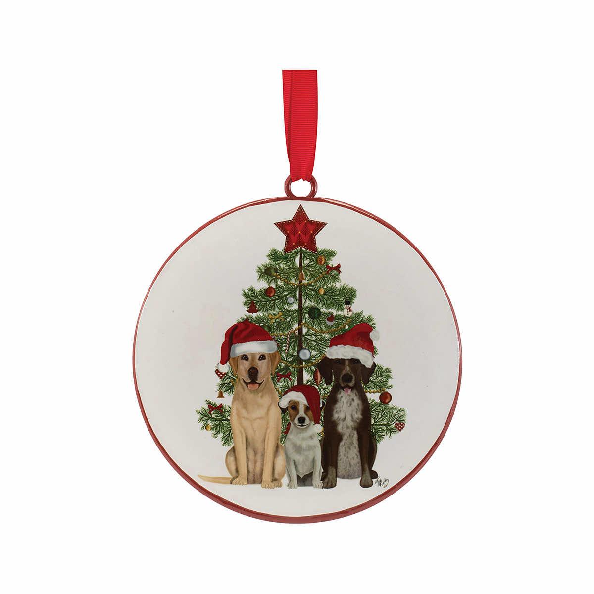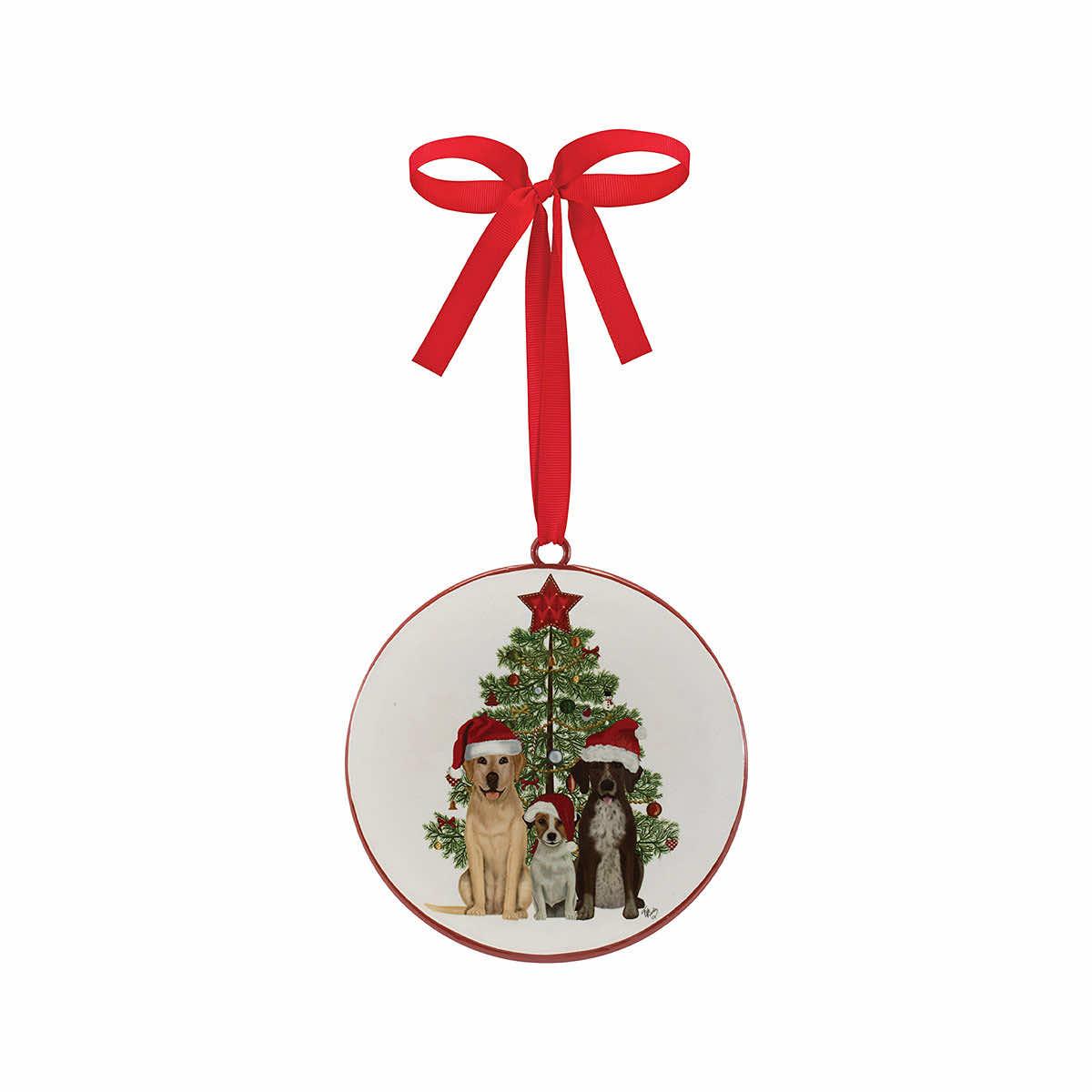 Tails will be wagging this holiday season, so put the Santa Hat Dogs Christmas Tree Ornament from Melrose International for the furry goodest boys and girls! Made from iron, this ornament features festive dogs sitting in front of the Christmas tree. It has a hanging loop with a ribbon tassel so you can find the perfect branch to put it on. Treat yourself to some Christmas cheer with your four-legged companions this season!