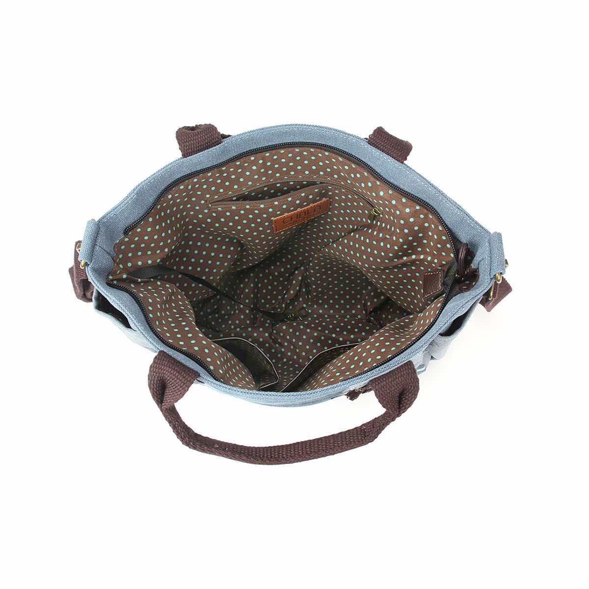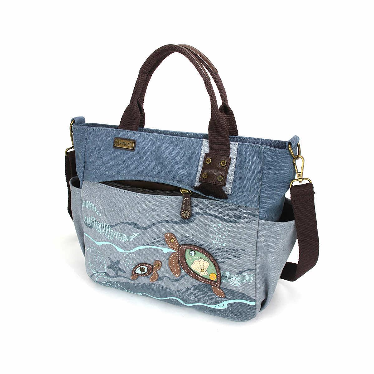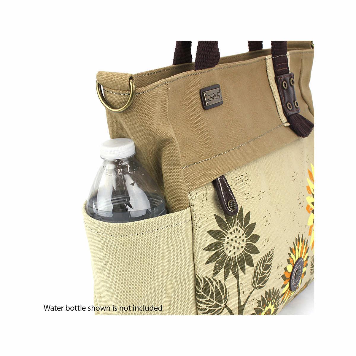 Brighten every outfit and occasion with a roomy bag by your side when you choose the Canvas Print Pocket Tote from Chala Handbags. Made from durable canvas, this tote bag features plenty of pockets for holding your phone, keys, wallet, water bottle, and so much more, as well as zippered pockets for securing those personal items. Load the main compartment with larger items, such as books, tablets, snacks, and so forth, then zip it up and keep all your goods protected from the elements and safely enclosed. Bring along everything you need to conquer the day and stay stylish as you do so.