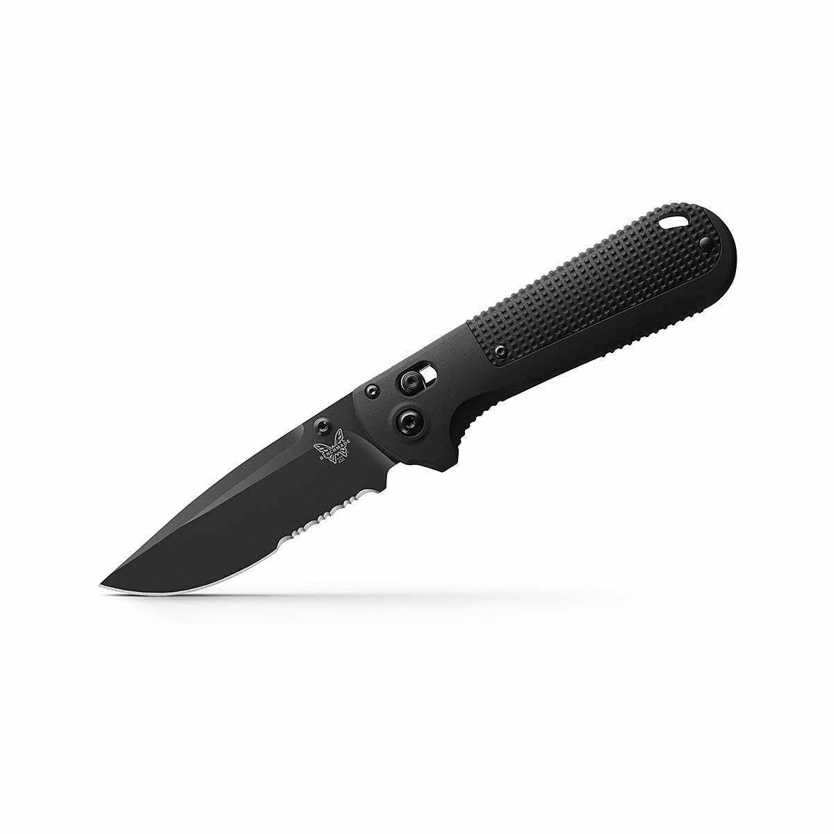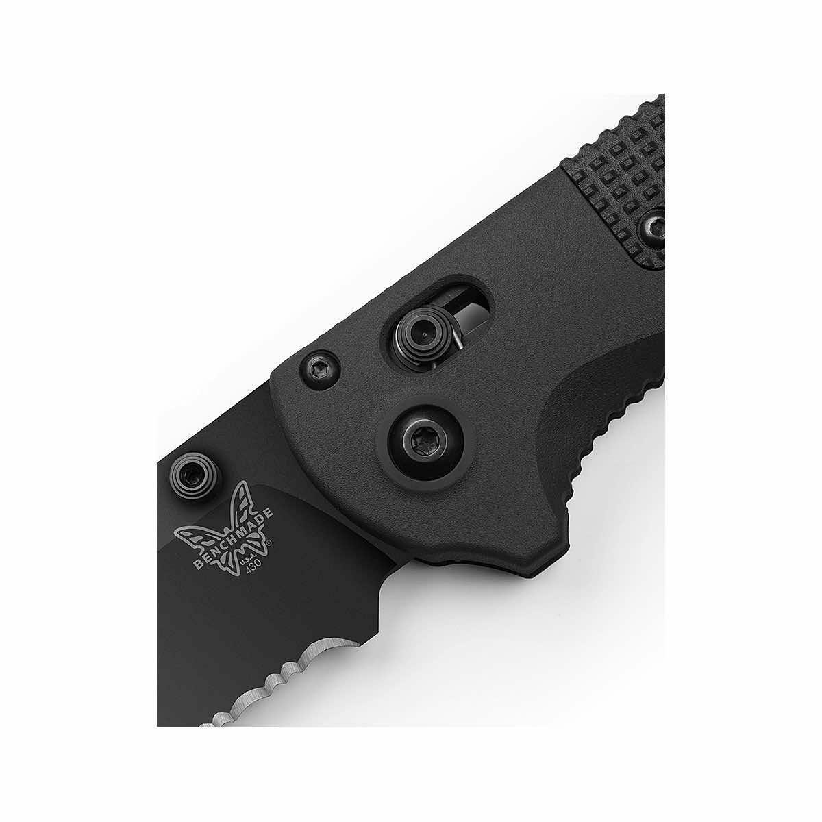 The brand-new 430SBK-02 Redoubt Blackout Serrated Knife from Benchmade offers performance, durability, and capability. Made in the USA, the Redoubt Blackout is a blade for those wanting a solid EDC for utility, while highlighting functional craftsmanship. Black Grivory handles give you a sturdy grip and a drop-point CPM-D2 Tool Steel serrated blade makes this knife a modern work-horse. There's no doubt that the Redoubt Blackout Serrated Knife will be a reliable addition to your preparedness kit.