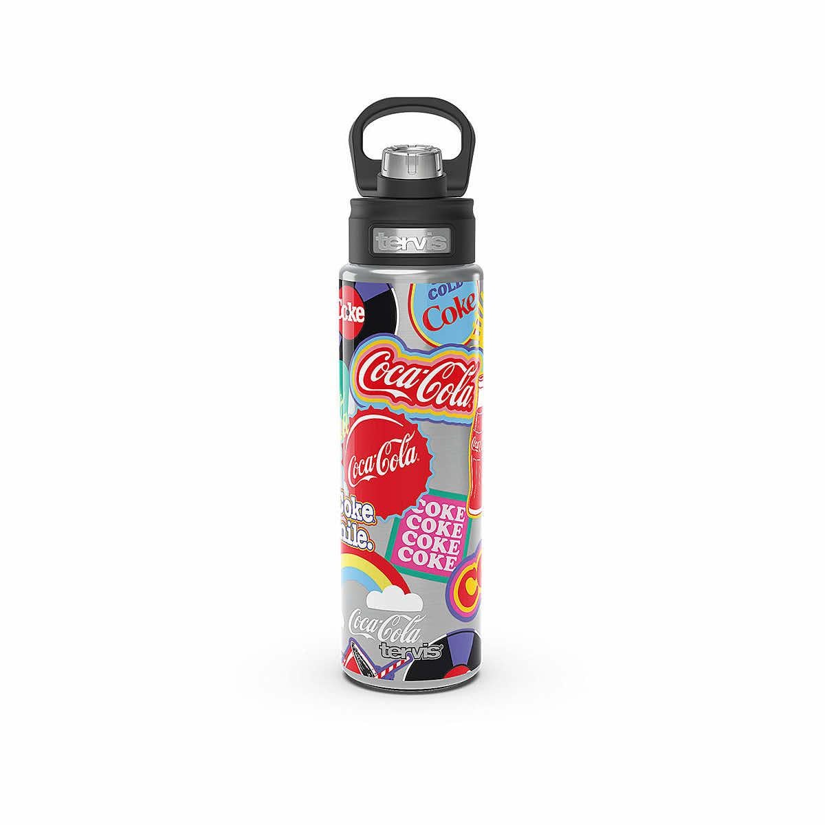 Stay refreshed with the Coca-Cola Stickers Stainless Steel Wide Mouth Tumbler from Tervis! This triple-insulated drinkware is made from durable stainless steel that won't retain tastes or odors but will keep your beverages cold all day long. The fun and vibrant design resembles a collage of Coca-Cola stickers in a variety of shapes and colors. Hydration never looked as good as this awesome steel tumbler!