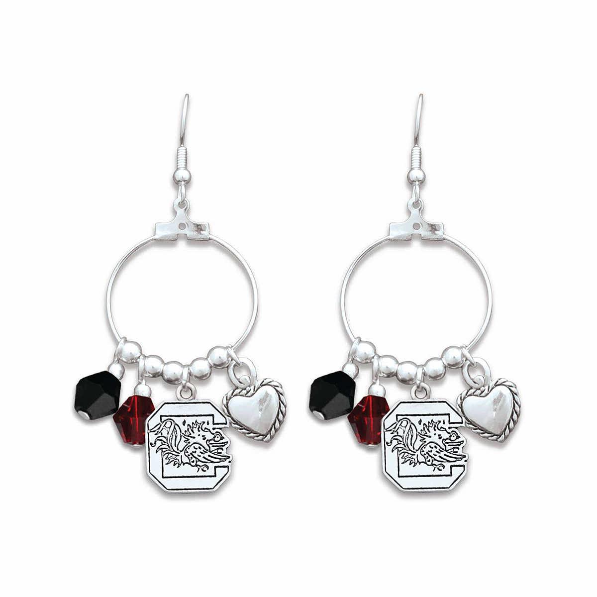 Beautiful and elegant, the Women's South Carolina Gamecocks Haute Wire Earrings by From The Heart will bring effortless charm to your game day outfit! These gorgeous dangling earrings feature a collection of high-quality charms, including beads in University of South Carolina garnet and black and an antique silver Gamecocks logo. When you want your collegiate pride to shine for any occasion, these earrings are a stunning choice!
