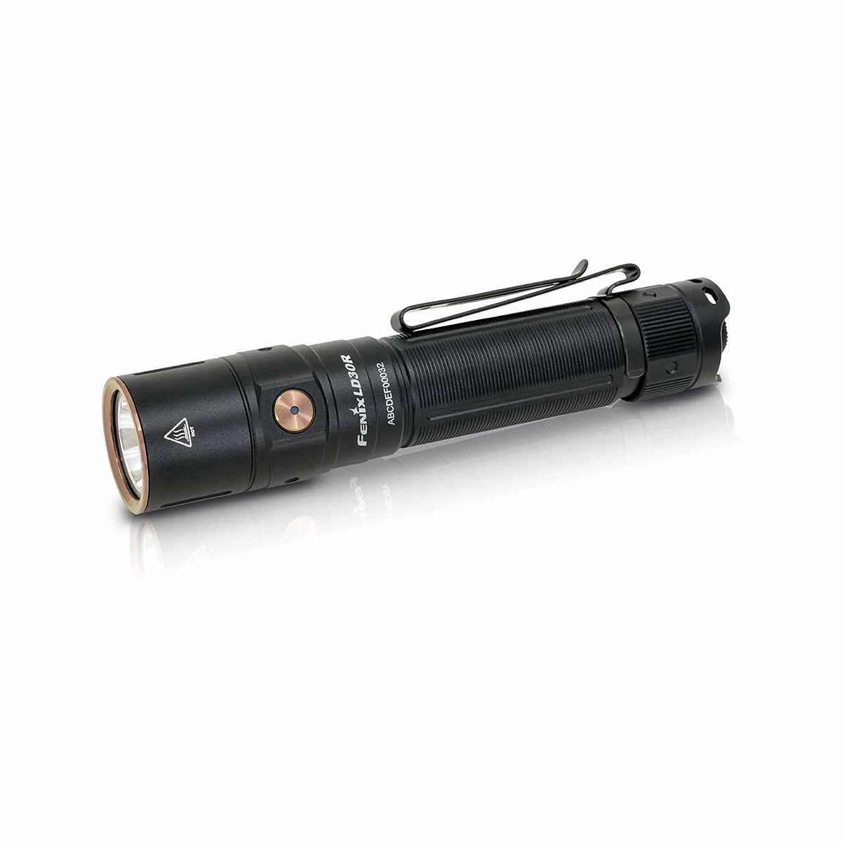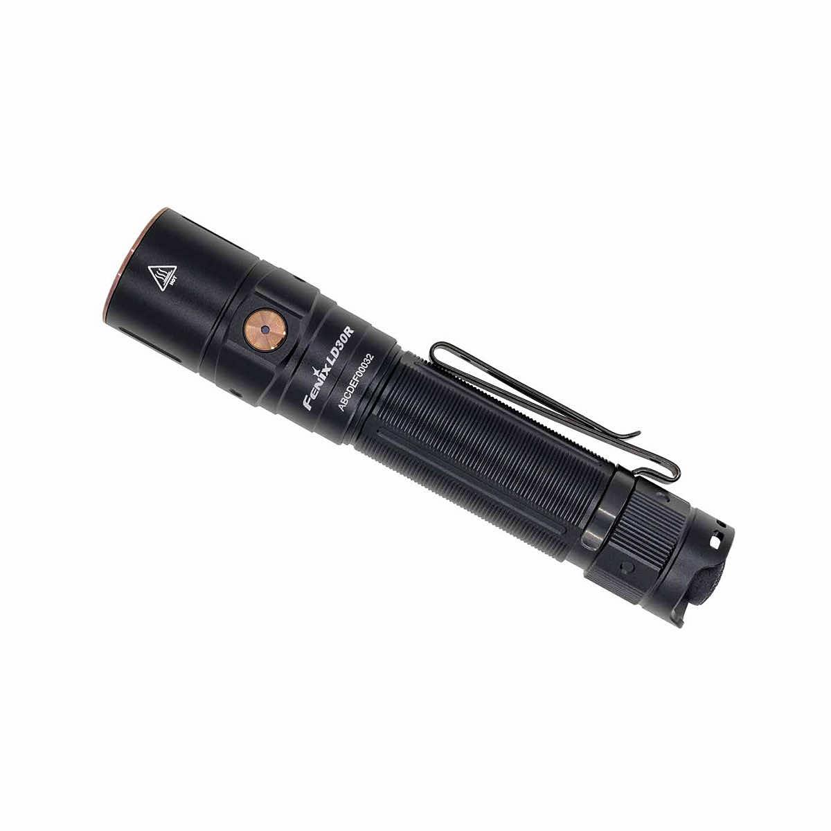 The LD30R Rechargeable Flashlight from Fenix Lighting is a powerful everyday carry flashlight with a maximum output of 1700 lumens. Activate it with the tail switch and cycle through seven lighting modes using the side switch. USB Type-C rechargeable with a battery level indicator helps keep your flashlight charged and at the ready. Plus, its two-position body clip makes it even more convenient to carry. With a durable IP68-rated waterproof and dustproof rating, you’ll have a flashlight that won't let you down.
