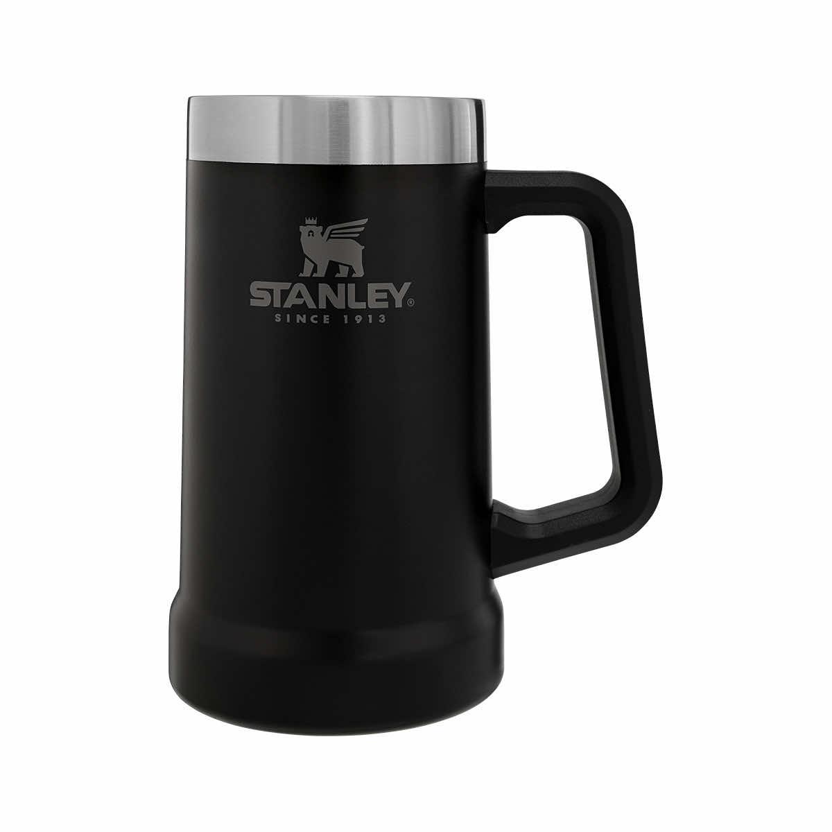 Raise a glass and give a cheers to the durability and style of the 24-ounce Adventure Big Grip Drink Stein from Stanley! Made from BPA-free, 18/8 stainless steel, this amazing stein offers double-wall vacuum insulation to keep your beverage crisp and chilly from the first pour to the last sip. Get a grip on the heavy-duty handle and hold your beverage high and proud. There's always room for celebration when you have the Adventure Big Grip Drink Stein!