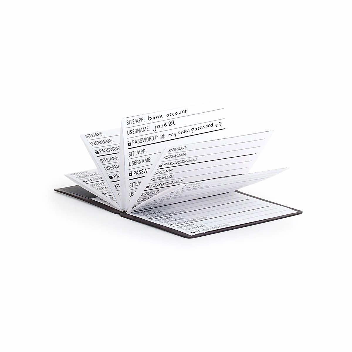 Protect your information no matter where you wander in the Password Keeper Book from Kikkerland! This perfectly compact magnetic book opens to accordian-style pages that can store up to 60 passwords for your convenience. The title sticker is removable to keep this password manager discreet, and it is sized just right for safe storage. This handy book is a game changer!