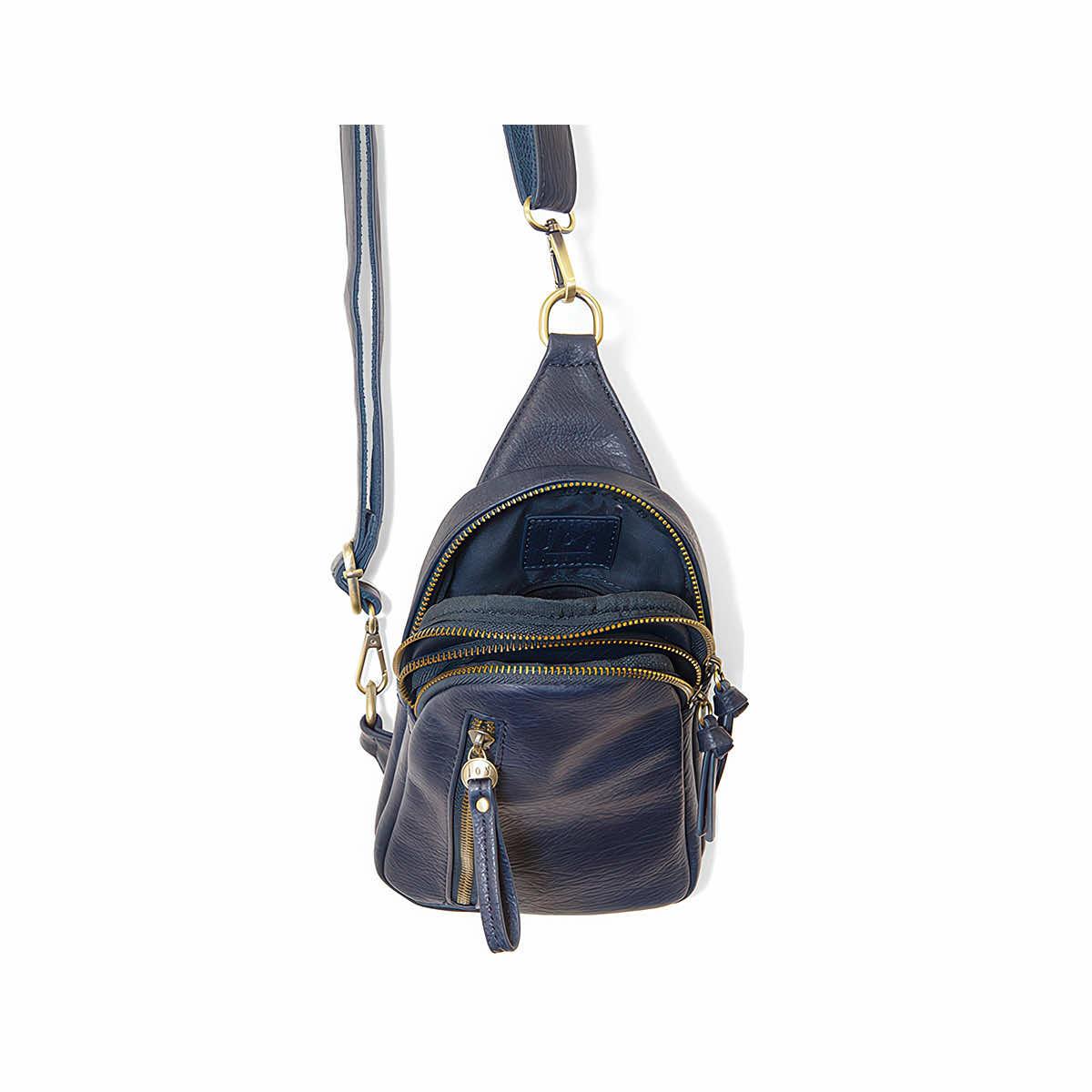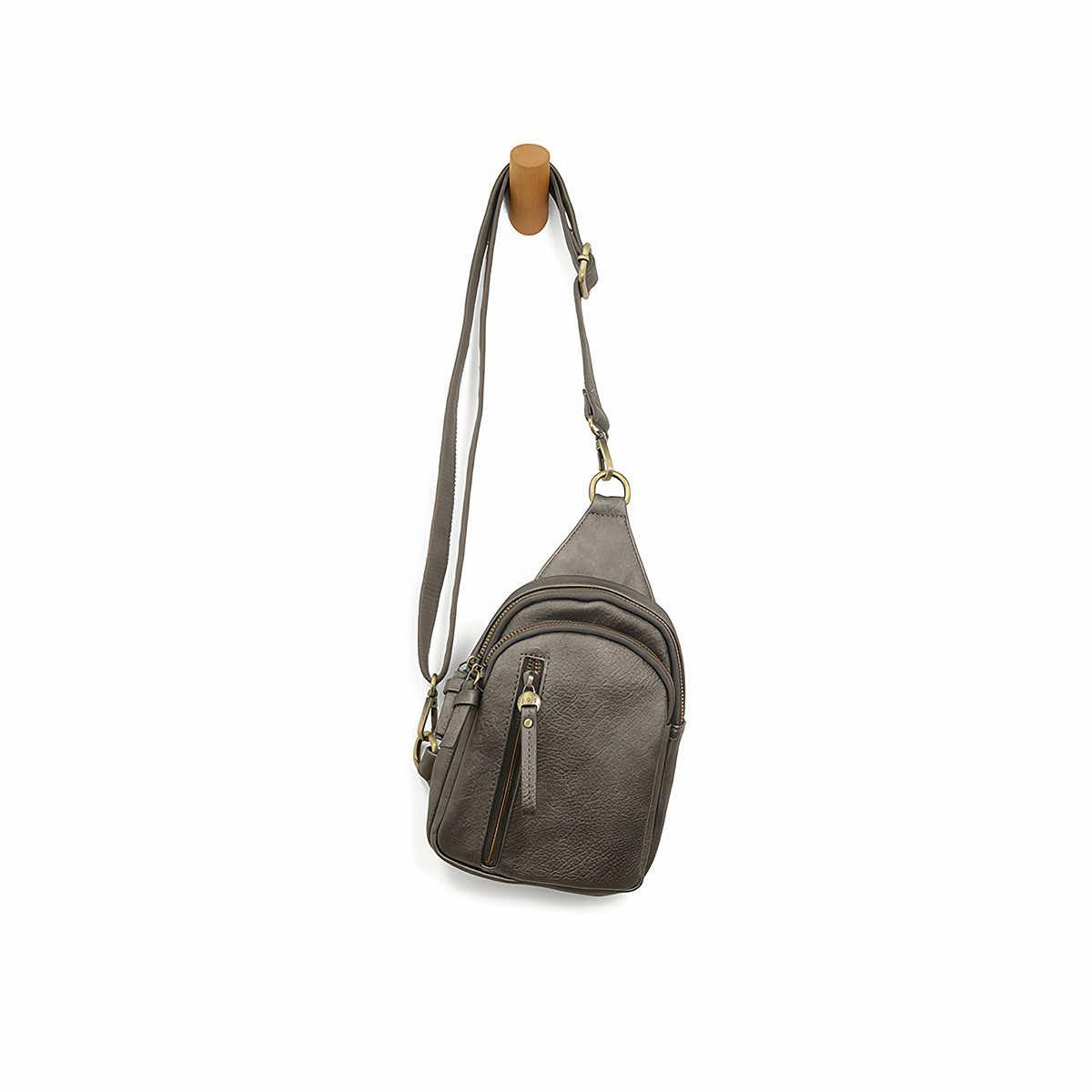 Blending uptown chic with downtown cool, the Skyler Sling Bag from Joy Susan is made in rich vegan leather. A convertible strap lends versatility, while a front zip pocket offers practical storage for your necessities. This sling bag offers dual exterior zip compartments with four interior credit card pockets and one interior zip-closure. The Skyler Sling is a great companion for a night on the town or a fun day trip!
