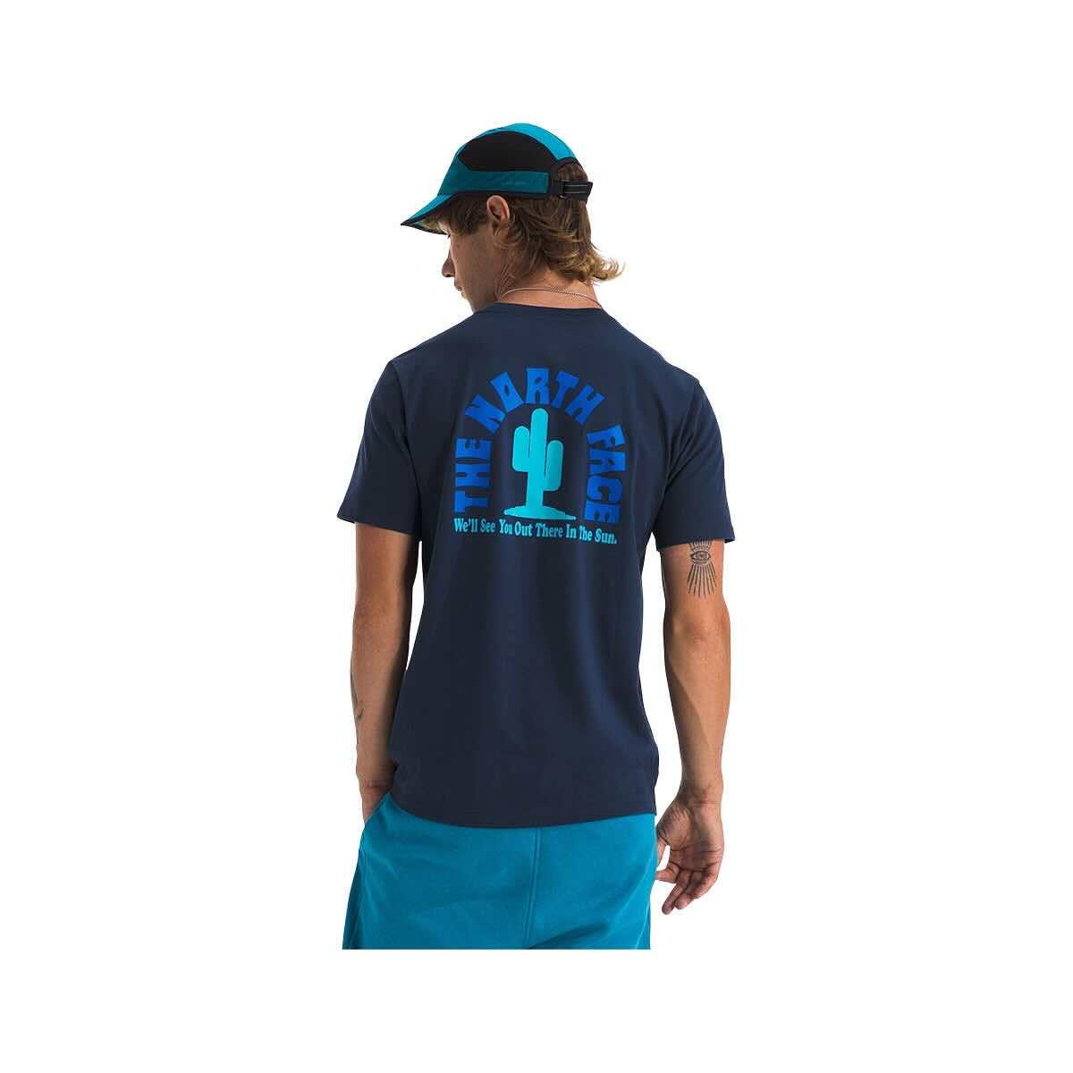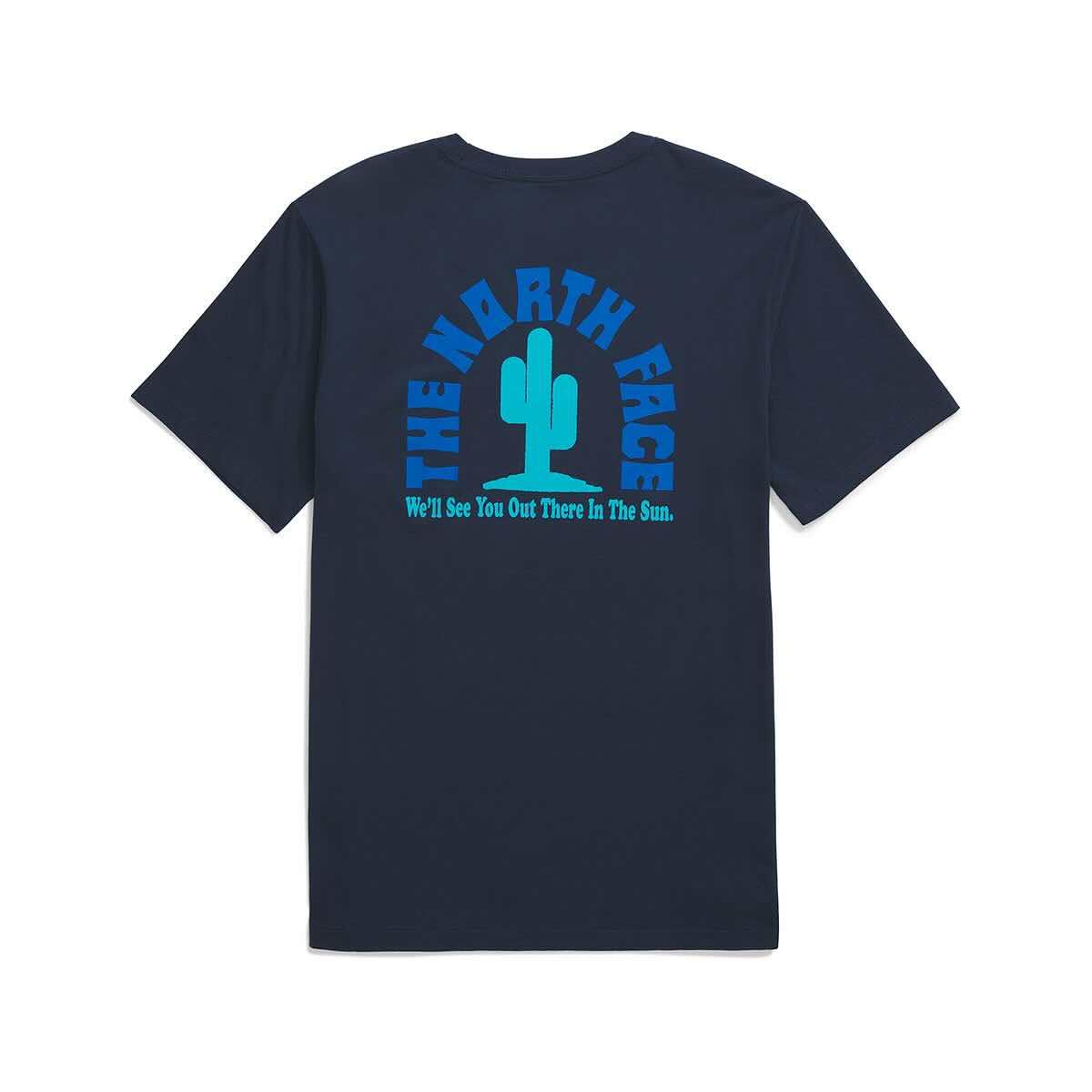 Cherish the public lands around you and show some love to the outdoors with the Men's Public Lands Cactus Short Sleeve T-Shirt from The North Face, which is made from 100% Climate Conscious Cotton to highlight and encourage sustainability in the layers you wear. This short-sleeved tee has a laidback, regular fit that is dialed in for a good time outside. The graphic on the back features an iconic cactus with "We'll See You Out There In The Sun" printed underneath. What are you waiting for? Throw on the Public Lands Cactus Short Sleeve T-Shirt and get into nature to experience, protect, and be amazed at the incredible public lands that you have access to!
