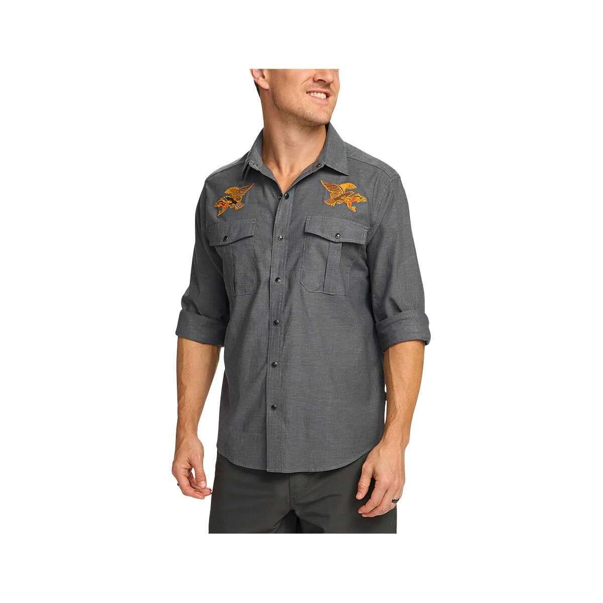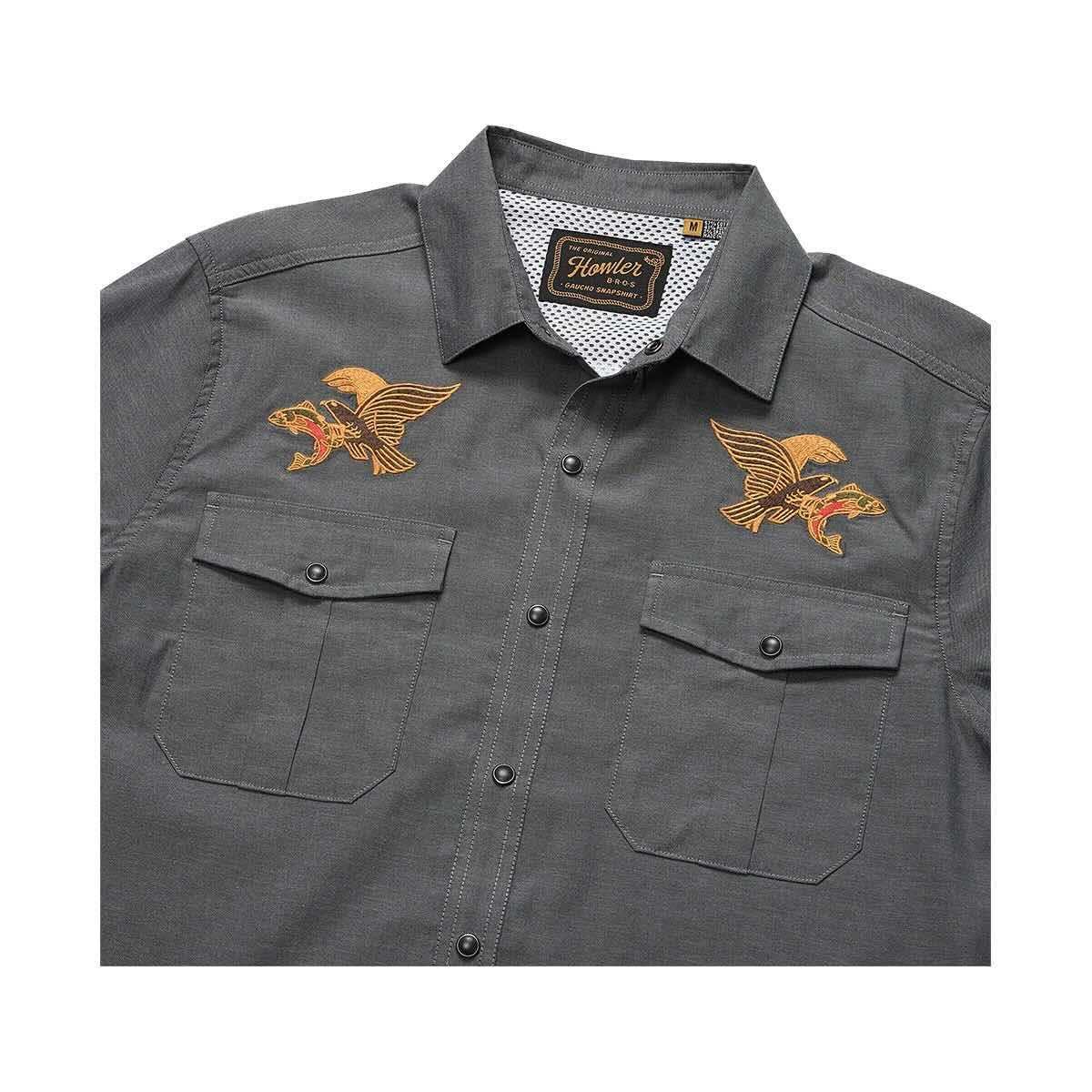 The Men's Gaucho Long Sleeve Snapshirt is one of the cornerstones that started the journey for Howler Brothers. Taking on the vintage style western shirt and mixing in some quick-drying tech creates an all-day wearable shirt that is full of character. This long-sleeve Snapshirt features a vented yolk on the back to let the breeze flow. With vintage snap buttons and a unique Osprey Prey custom embroidery above dual chest pockets, you'll be reliving the dreams of the Old West. From wrangling in your next fish to telling tales around the campfire or just enjoying the simplicity of a good sunset, the Gaucho Snapshirt is a starting point for great memories!