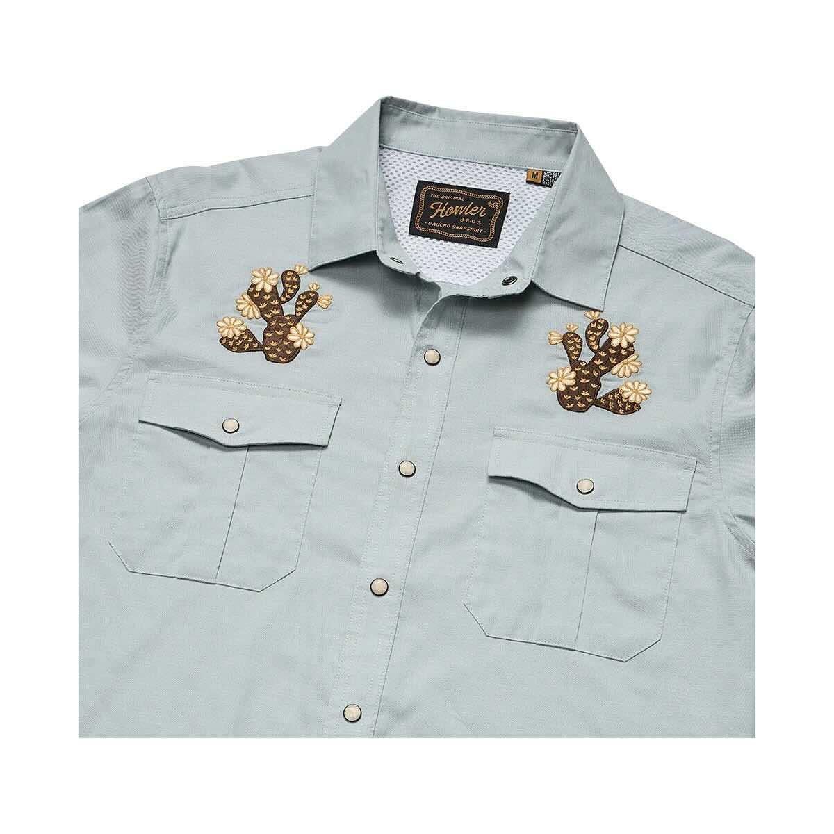 The Men's Gaucho Long Sleeve Snapshirt is one of the cornerstones that started the journey for Howler Brothers. Taking on the vintage style western shirt and mixing in some quick-drying tech creates an all-day wearable shirt that is full of character. This long-sleeve Snapshirt features a vented yolk on the back to let the breeze flow. With vintage snap buttons and a unique Prickly Pears custom embroidery above dual chest pockets, you'll be reliving the dreams of the Old West. From wrangling in your next fish to telling tales around the campfire or just enjoying the simplicity of a good sunset, the Gaucho Snapshirt is a starting point for great memories!