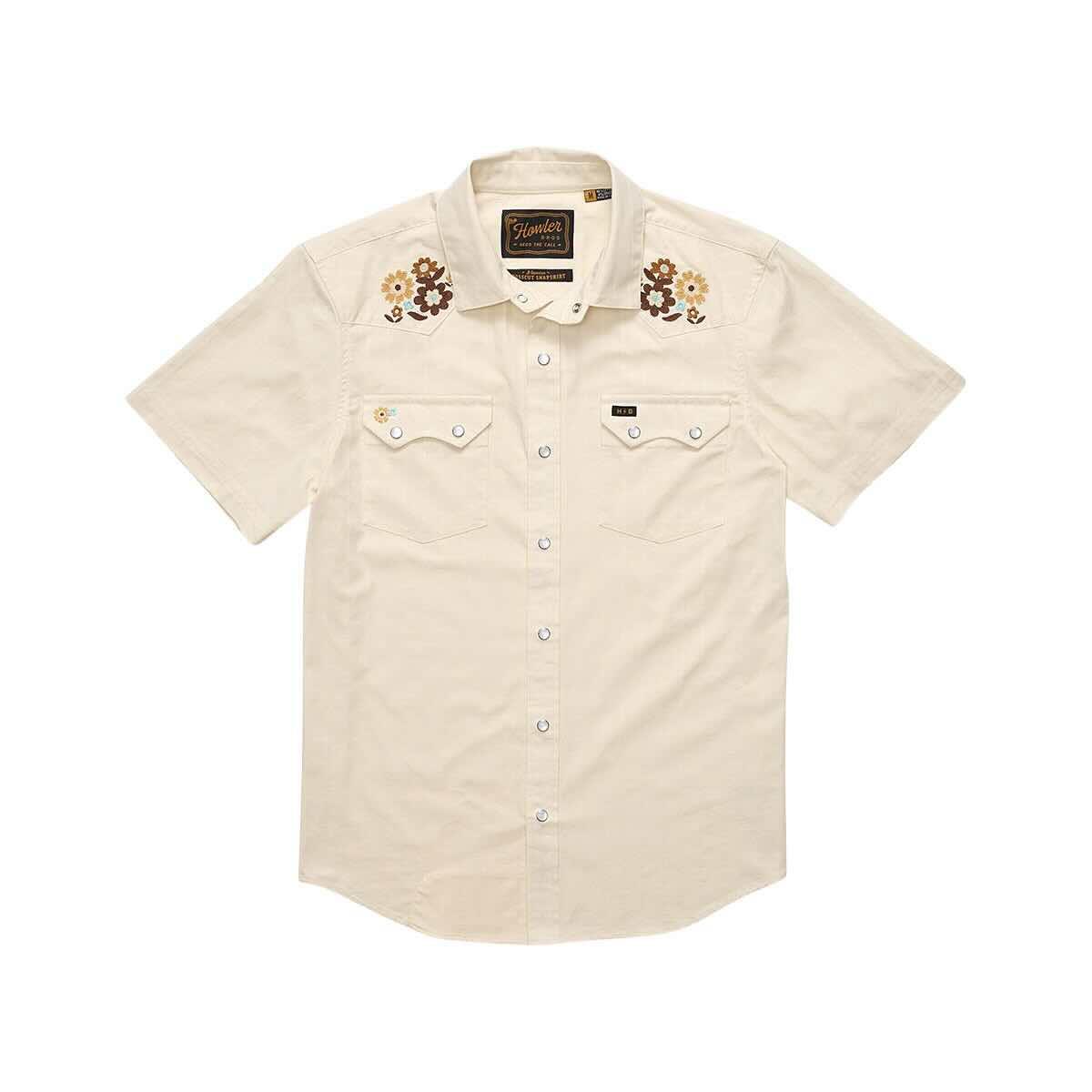 Like its long-sleeve counterpart, the Men's Crosscut Deluxe Short Sleeve Shirt from Howler Brothers is a fan favorite for numerous reasons. The first is the amazing blend of stretch chambray fabric that moves with you to create a soft, comfortable top to get you through the summertime warmth. Another reason why you'll love this top is the snazzy pearl snap buttons and the unique motif embroidery that highlights a laidback style for all your favorite outings. From stealing the show at happy hour to kicking back at camp for a sunset, the Crosscut Deluxe Short Sleeve Shirt is a surefire layer to keep the festivities groovy!