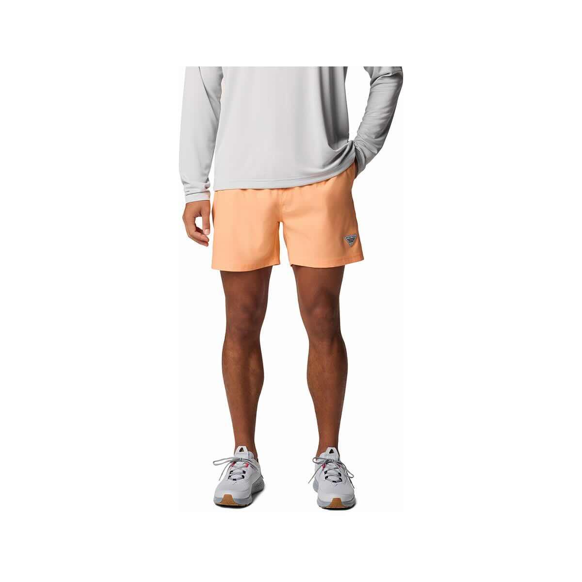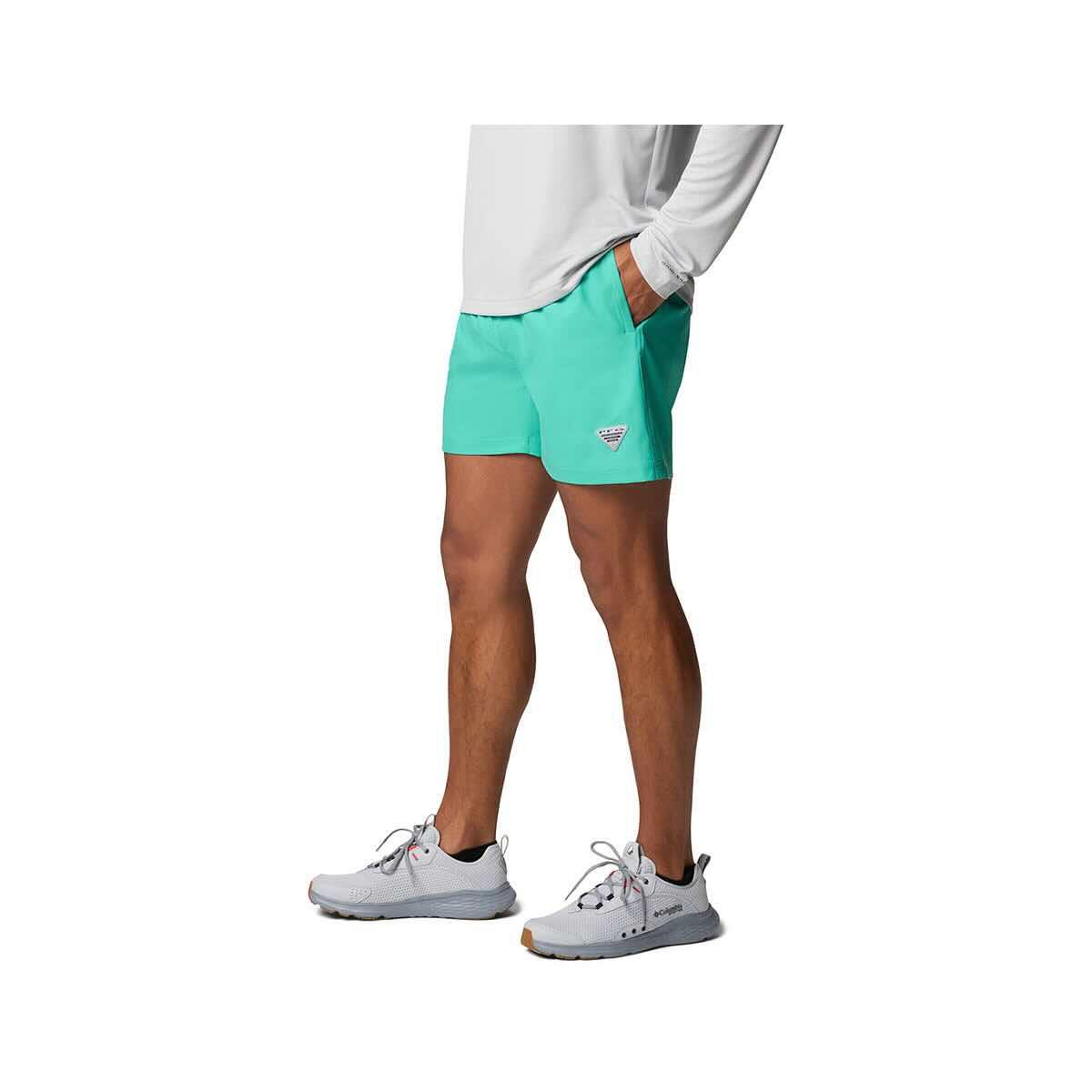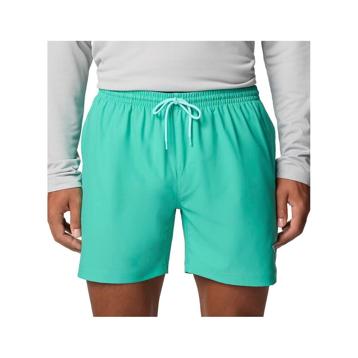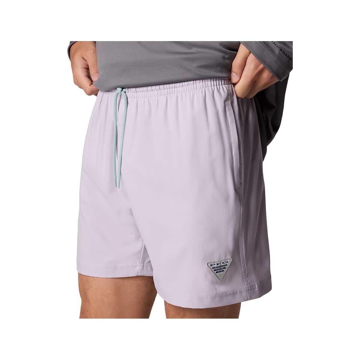 Make a splash on your next outing with the Men’s PFG Rambler Water Shorts from Columbia, a versatile quick-dry shorts equipped with Omni-Shield™ advanced water and stain repellency, vital Omni-Shade™ UPF 50 sun protection, and a comfortable, lightweight design perfect for fishing, boating, swimming, or lakeside lounging. As essential Performance Fishing Gear (PFG), these men's water shorts are engineered to handle sun, spray, and spontaneous swims while keeping you comfortable. The quick-drying fabric ensures you won't stay soggy long after leaving the water, while the Omni-Shield™ finish helps resist absorption and wards off stains. Feel confident during long days outdoors, knowing the built-in UPF 50 sun protection is safeguarding your skin. Featuring a comfortable elastic waistband with an adjustable drawcord for a secure fit, these PFG shorts are built for activity. Mesh pocket bags allow for quick drainage, making these practical outdoor shorts for any adventure near the water. Whether you need reliable fishing shorts, comfortable boating shorts, or just great all-around water shorts, the Rambler delivers.