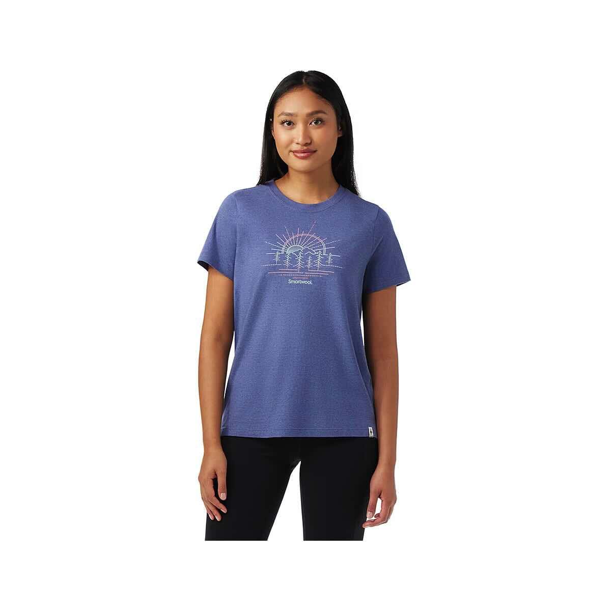 Crafted with performance, the Women's Mountain Sol Short Sleeve Graphic T-Shirt from Smartwool is from a Merino wool and organic cotton blend to give you moisture management and temperature regulation for all of your favorite summertime activities. The regular fit offers room to move without additional bulk and is designed to keep up with your daily movements. The blend of functional fabric highlights durability, quick drying, and cooling properties for gym sessions, hiking trails, or just day-to-day errands. Start your season with a layer of active comfort and fall in love with the Mountain Sol Short Sleeve Graphic T-Shirt!