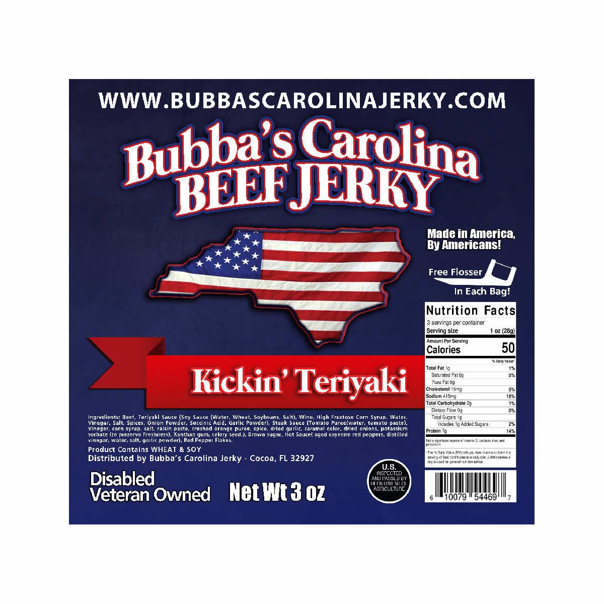 The Kickin' Teriyaki Beef Jerky from Bubba's Carolina Jerky is a surefire snack that is bound to be a delicious hit. From gameday tailgates to a snack on the trail, this beef jerky offers hearty sustenance with mouth-watering flavors. Enjoy the savory teriyaki flavors with a touch of heat for an added kick that gives this jerky a great taste while maintaining its tenderness.