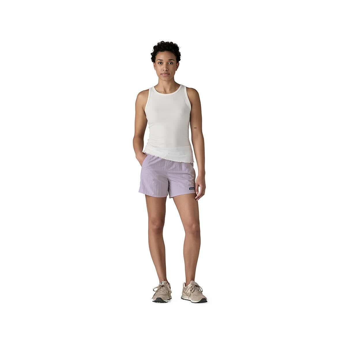 Short and to the point, these 5-inch Women's Baggies Shorts from Patagonia are crafted to tackle adventures with comfort and style. Made from recycled nylon with a durable water-repellent finish, these 5-inch shorts ensure protection from rain and splashes and transition from trail to water ventures with ease. The front pockets provide a couple of different uses, such as shielding your hands from the elements, storing small essentials, or stuffing the shorts into it for a carry-size pack. From the beach to the Great Outdoors, slip on the best shorts for the occasion and take your explorations further.