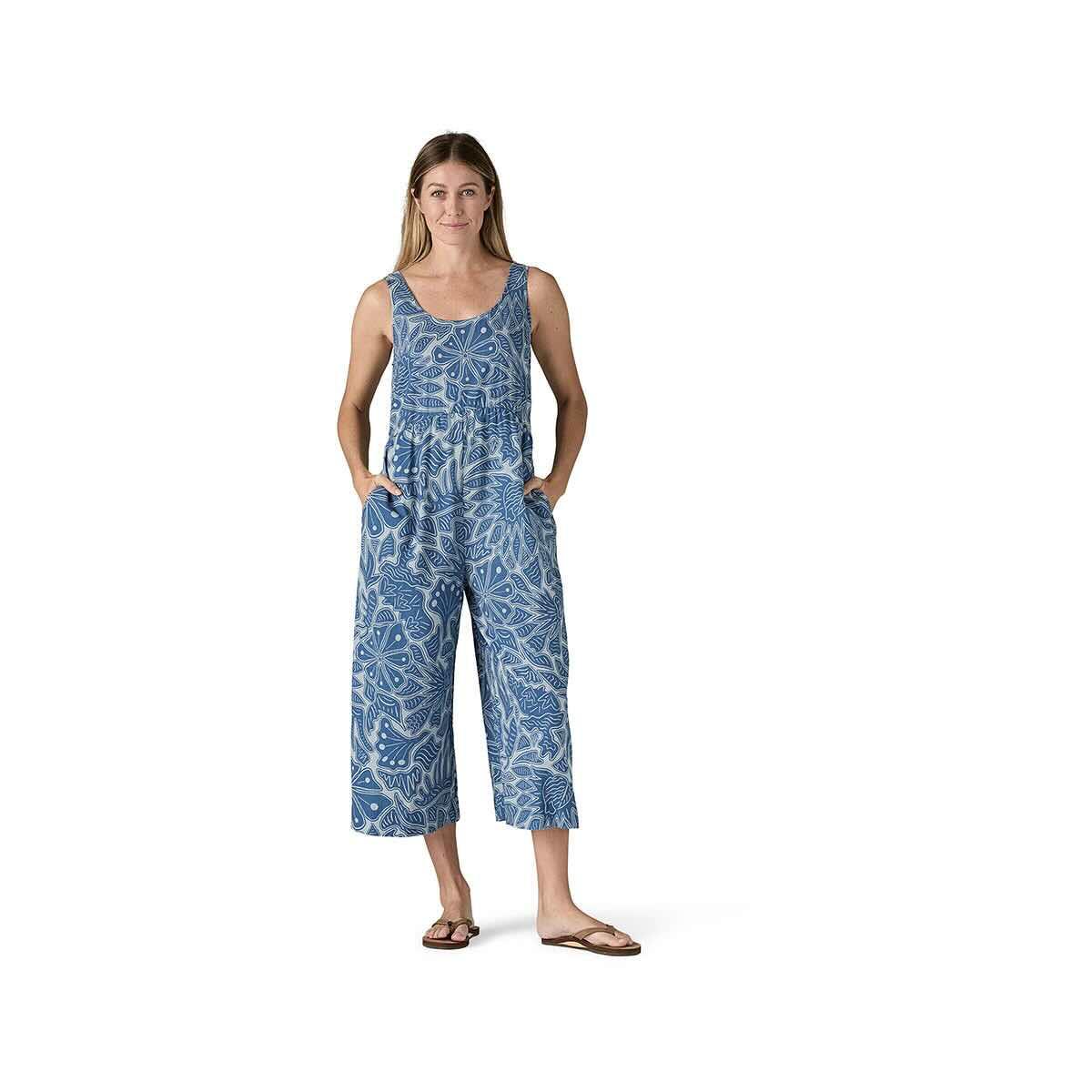 Have yourself a party in the Women's Garden Island Jumpsuit from Patagonia, and fall in love with the soft and lightweight blend of durable hemp and TENCEL lyocell plain weave fabric! For days when the humidity and heat are off the charts, this sleeveless jumpsuit will catch the breeze and keep you feeling cool. The hand pockets on the side, easy on/off side zip, bra-friendly straps, and cropped, wide leg style are all features that highlight the flattering functionality of the adorable outfit. Get into the flow and feel of summer fashion with the Garden Island Jumpsuit!