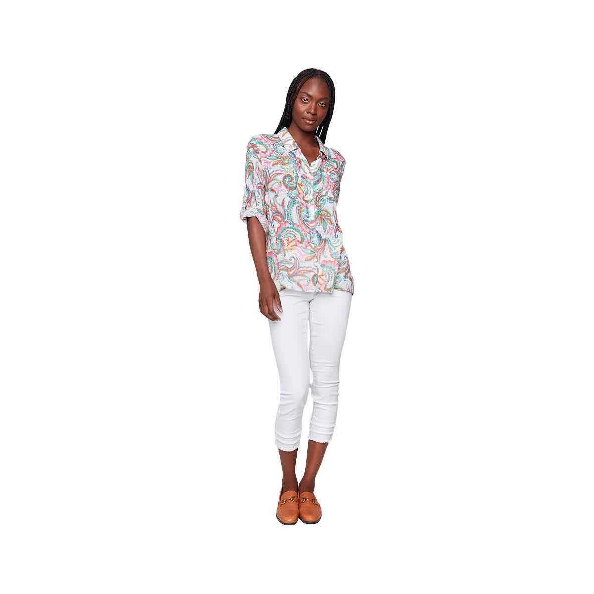The Women's Printed Long Sleeve Cotton Gauze Shirt from Charlie B combines lightweight comfort with a stylish, eye-catching print crafted from breathable cotton gauze fabric. This women's long sleeve shirt offers a relaxed fit, perfect for layering or wearing on its own, making it a versatile addition to your wardrobe. The soft, airy cotton gauze material ensures all-day comfort, while the unique printed design adds a touch of sophistication. This ladies' top is ideal for transitioning between seasons, providing a comfortable and stylish option for various occasions.