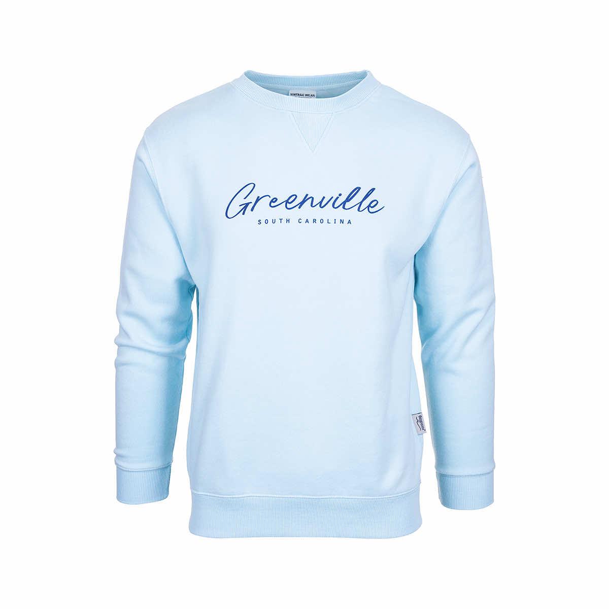 The Greenville Burn Wash Script Crew Sweatshirt from Bay Pointe is made from a cotton-poly blend that is so soft and comfy, you'll never want to take it off! The fabric is burn-washed for a unique color and a trusty fit, with ribbing at the cuffs and edges to promote durability. The fleece-lined interior provides a cozy feel for early morning errands or relaxing evenings around a fire pit. From long-time locals to road trippers passing through, this pullover is a delightful memento of your time in Greenville, South Carolina, a true gem of the South with tons of natural beauty!