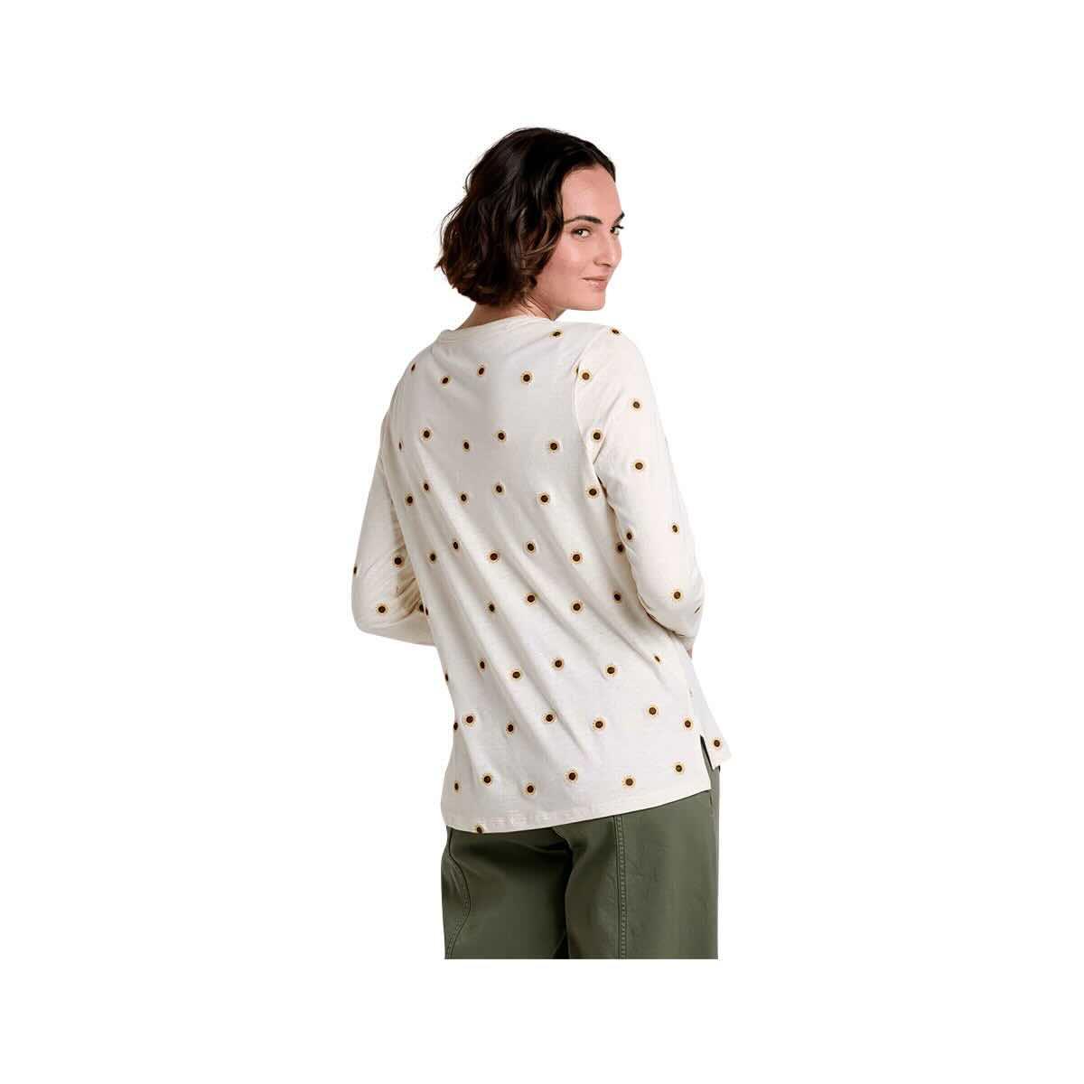 The Women's Primo Long Sleeve Crew Embroidered T-Shirt from Toad&Co features cute embroidered detailing on a tee crafted from organic cotton with a washed-down ease. Who says basics are boring? Because this long-sleeved tee is blooming with sweet elegance and will never come close to boring. The Primo jersey is made from Indian organic cotton and grown without pesticides or GMO seed. Wear it on its own or layer it under your favorite cardigan or coat for a lovely outfit to welcome autumnal fashion with open arms.