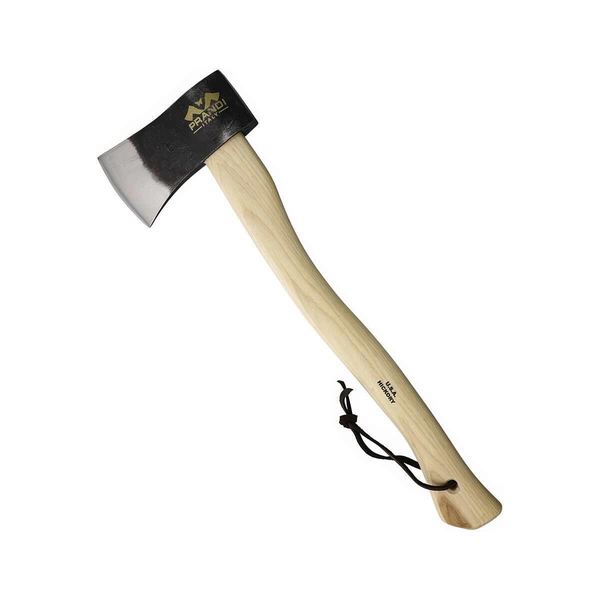 Add some kindling to your adventure with the Yankee Hatchet from Prandi, a true essential for weekends in the woods and exploring the backcountry. The head is made from carbon steel C45, which is polished and hardened for seasons of durability. The handle is crafted from hickory wood for a secure fit and an ergonomic feel to give you a strong grip for chipping and chopping your campfire wood.