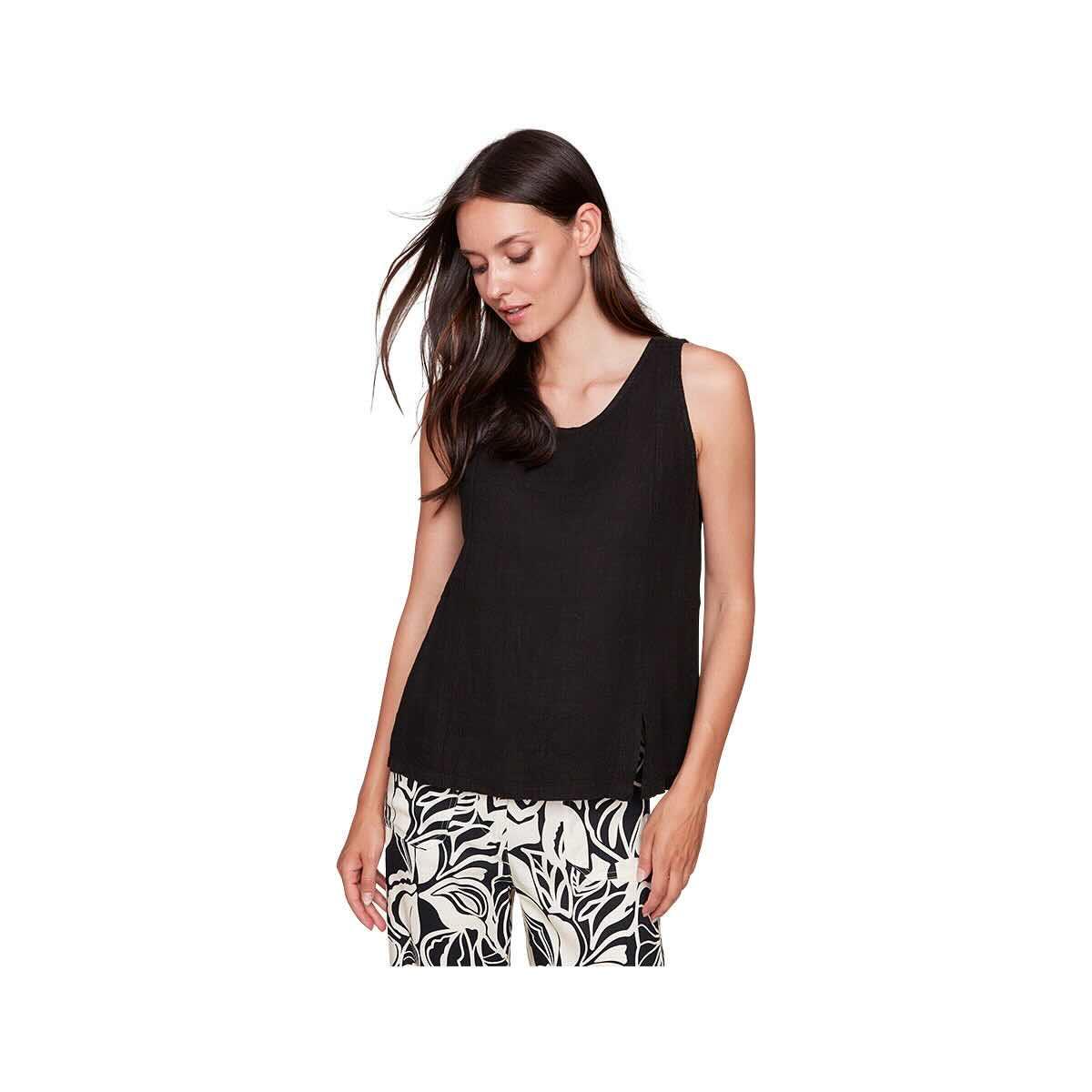 Discover the Women's Sleeveless Linen Top from Charlie B, a breathable and stylish linen tank top crafted for ultimate comfort and warm-weather fashion, featuring a classic sleeveless design and a lightweight 100% linen fabric. This versatile women's top offers an effortless, chic look, perfect for layering or wearing on its own. The natural linen material ensures breathability, keeping you cool and comfortable all day long. Elevate your wardrobe with this essential sleeveless top that pairs beautifully with jeans, skirts, or shorts for a variety of stylish outfits.