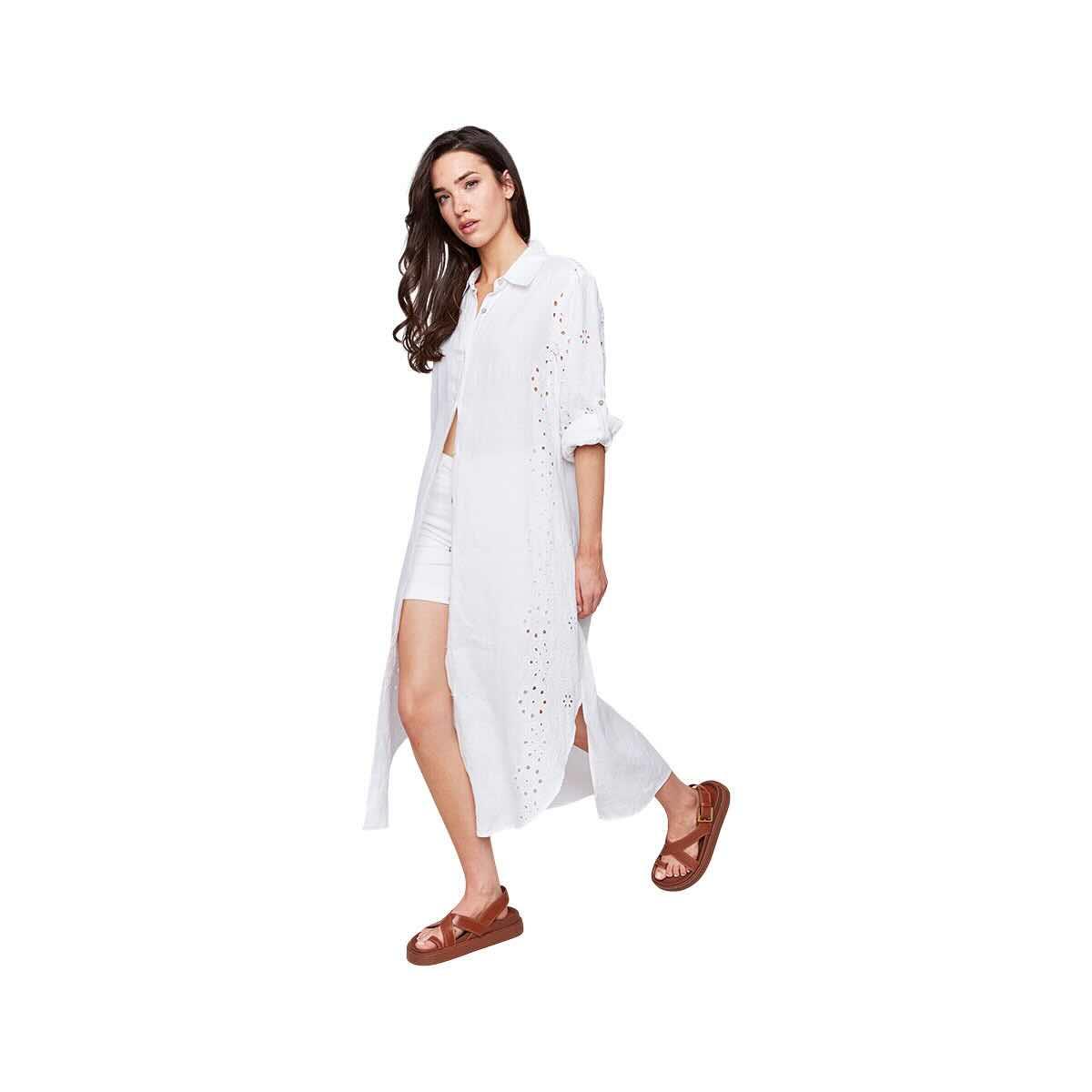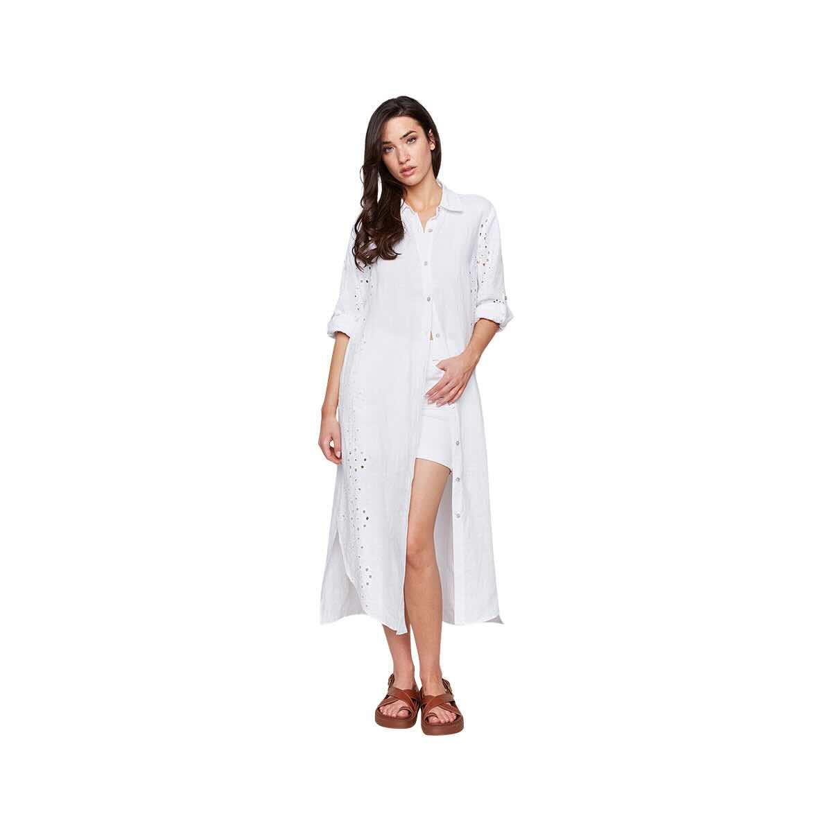 Introducing the Women's Eyelet Embroidery Cotton-Linen Tunic Dress from Charlie, a charming and breathable women's tunic dress crafted from a lightweight cotton-linen blend and featuring delicate eyelet embroidery detailing throughout for a touch of feminine elegance. This stylish dress offers a relaxed and comfortable fit, perfect for warm weather and effortless style. The intricate eyelet embroidery adds a beautiful texture and visual interest to this versatile cotton-linen tunic. Dress it up with sandals or keep it casual with flats – this embroidered tunic dress is a must-have for your wardrobe.