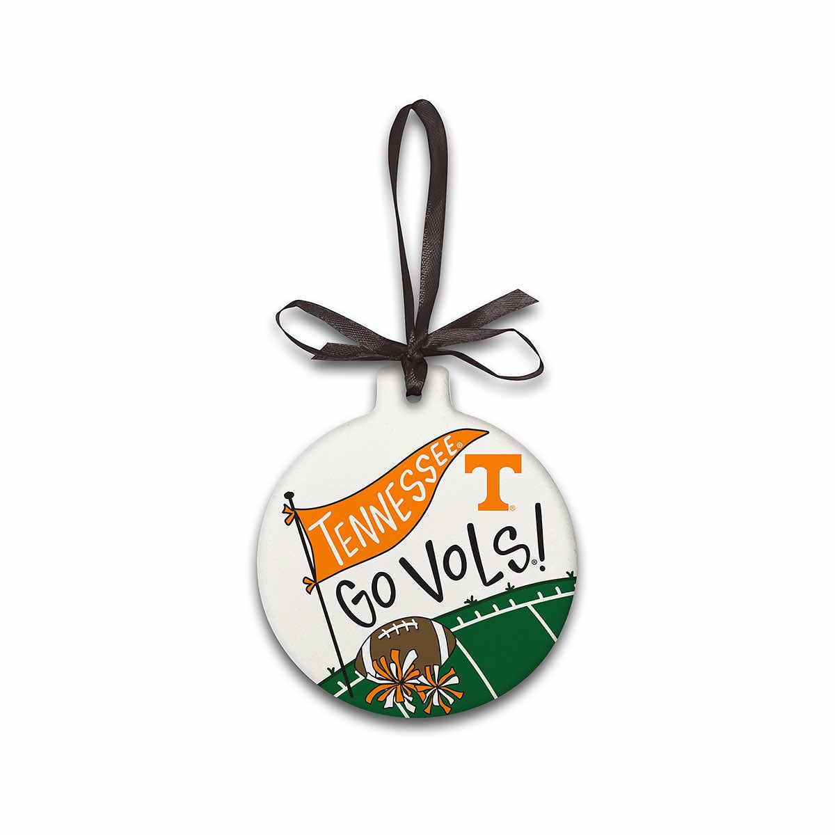 Celebrate the holidays and Big Orange with the University of Tennessee Stone Ornament from Magnolia Lane! Your tree will shine with Southern pride when you use the included ribbon to hang this delightful ornament from its boughs. The cheerful image printed on this high-quality ornament features the phrase "Go Vols!" over a football field scene. Show off your Volunteers pride all season long with this handsome ornament!