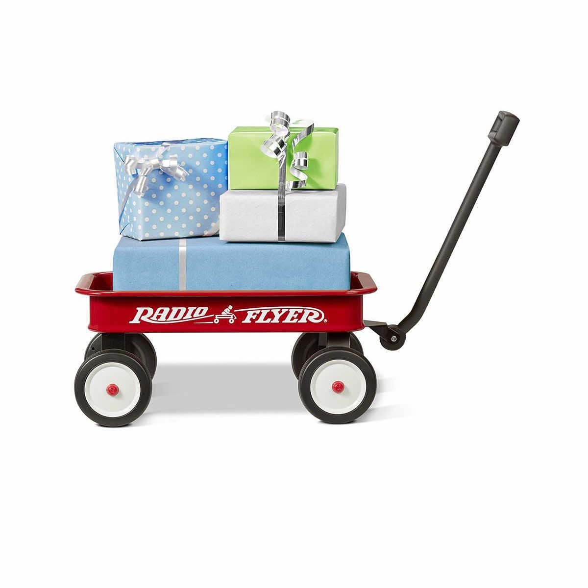 The My 1st Wagon from Radio Flyer is a toy version of the Original Little Red Wagon with a classic look! This iconic wagon is beloved by generations. The all-steel seamless body and sleek design make the Radio Flyer My 1st Wagon a timeless classic in the toy version. This little wagon is perfect for carrying stuffed animals and toys. Watch your child have a blast pulling all of their essentials all around the house or yard.