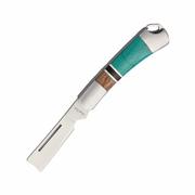The Turquoise Mini Razor Folding Knife from Rough Rider is a unique and elegant knife at a nice price! This razor-style knife features a stainless steel blade with a turquoise and wood handle. The cool colors of the handle are great to show off for your blade collection. It may be mini, but this folding knife offers an old-school style with a sharp design.
