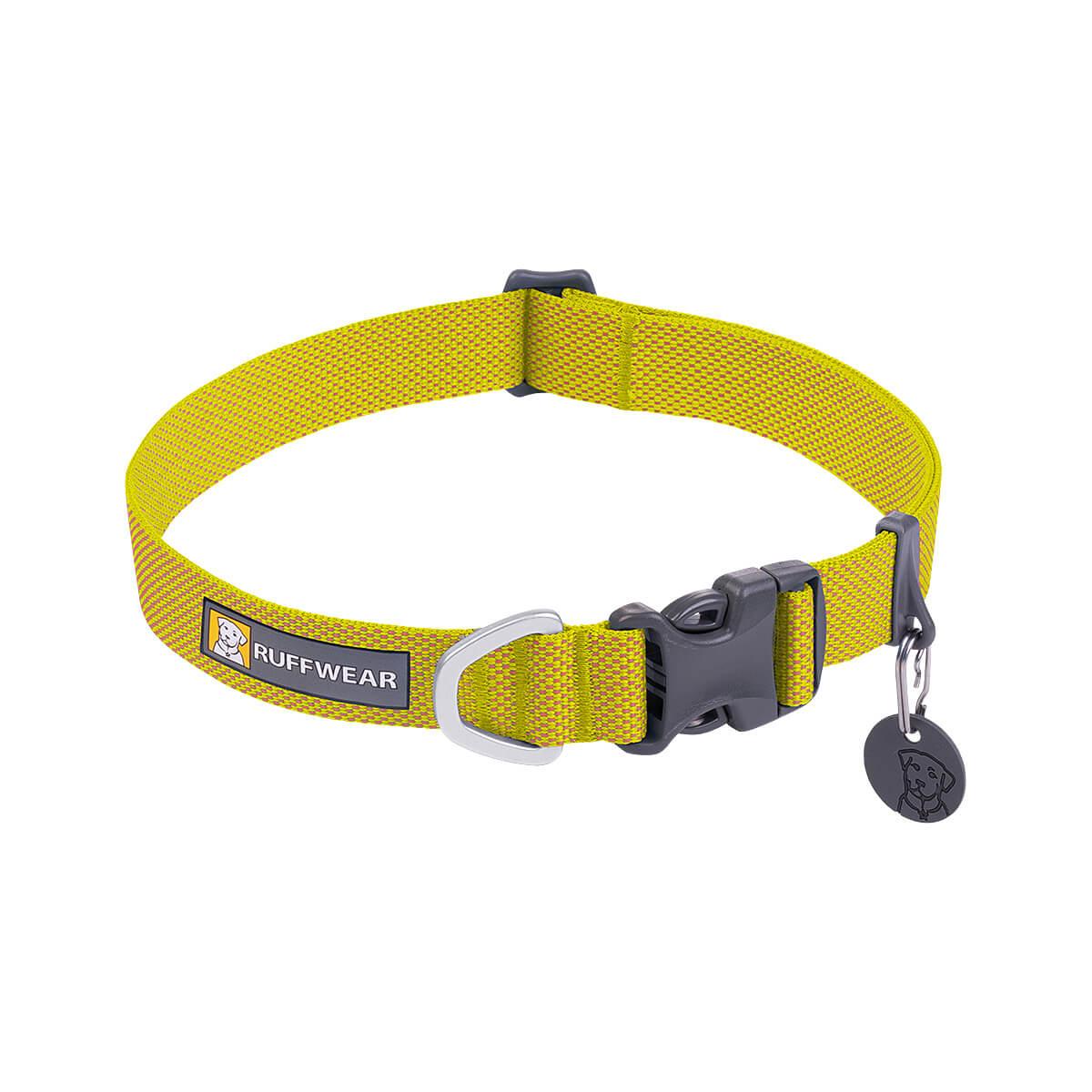 The Hi & Light Lightweight Dog Collar from Ruffwear is an ultralight dog collar with a minimalist design. Built with webbing inspired by rock climbing slings and runners known for their impressive strength-to-weight ratio, the Hi & Light Collar keeps it simple with a strong side-release buckle for easy on/off and Ruffwear's signature collar features: an aluminum D-ring, a piton-inspired separate ID tag attachment point, and a silicone tag silencer.