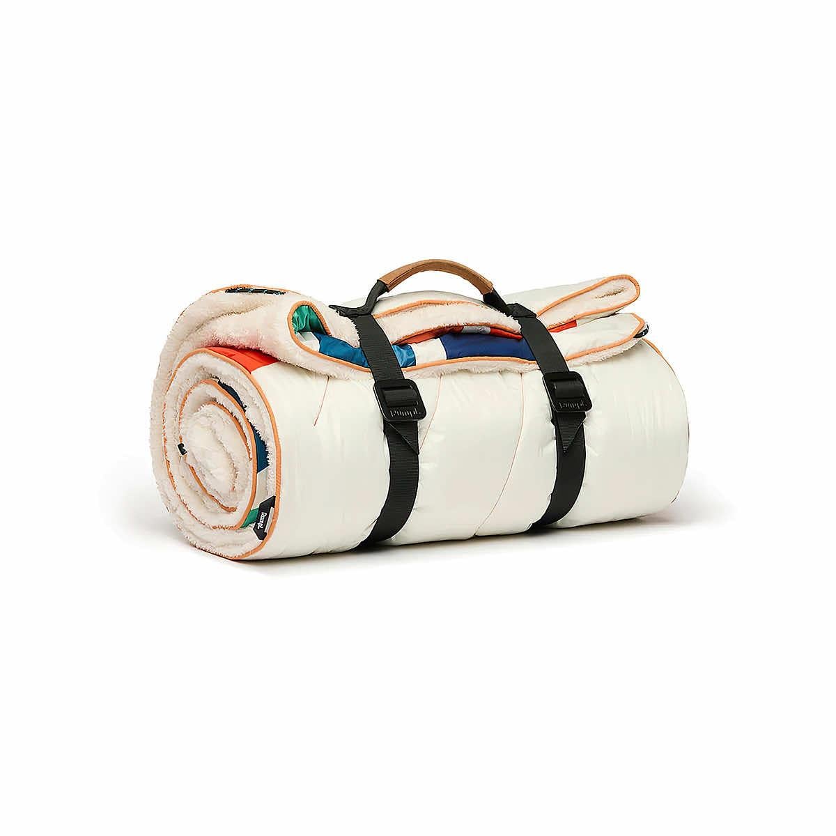 Rumpl is bringing back the 70s with the Sherpa Puffy Blanket! Rumpl paired the tried and true Original Puffy Blanket with an impossibly soft Sherpa fleece material to create the ultimate blanket that keeps you cozy anywhere. The Sherpa Puffy blanket is one side Original Puffy, one side incredibly soft and durable sherpa fleece. It will stay soft, wash after wash. The Sherpa Puffy synthetic insulation is made from 100% post-consumer recycled materials. Rumpl uses a 90/10 DWR, also known as a durable water repellent, on all of their blankets. This finish provides protection from the elements, making these blankets weather and stain resistant. The Cape Clip®, featured on all 1-Person blankets, allows you to wear your blanket hands-free so you can start a fire, drink your bevy, or change the channel, all while staying warm. Bring coziness anywhere with the Sherpa Puffy Blanket!