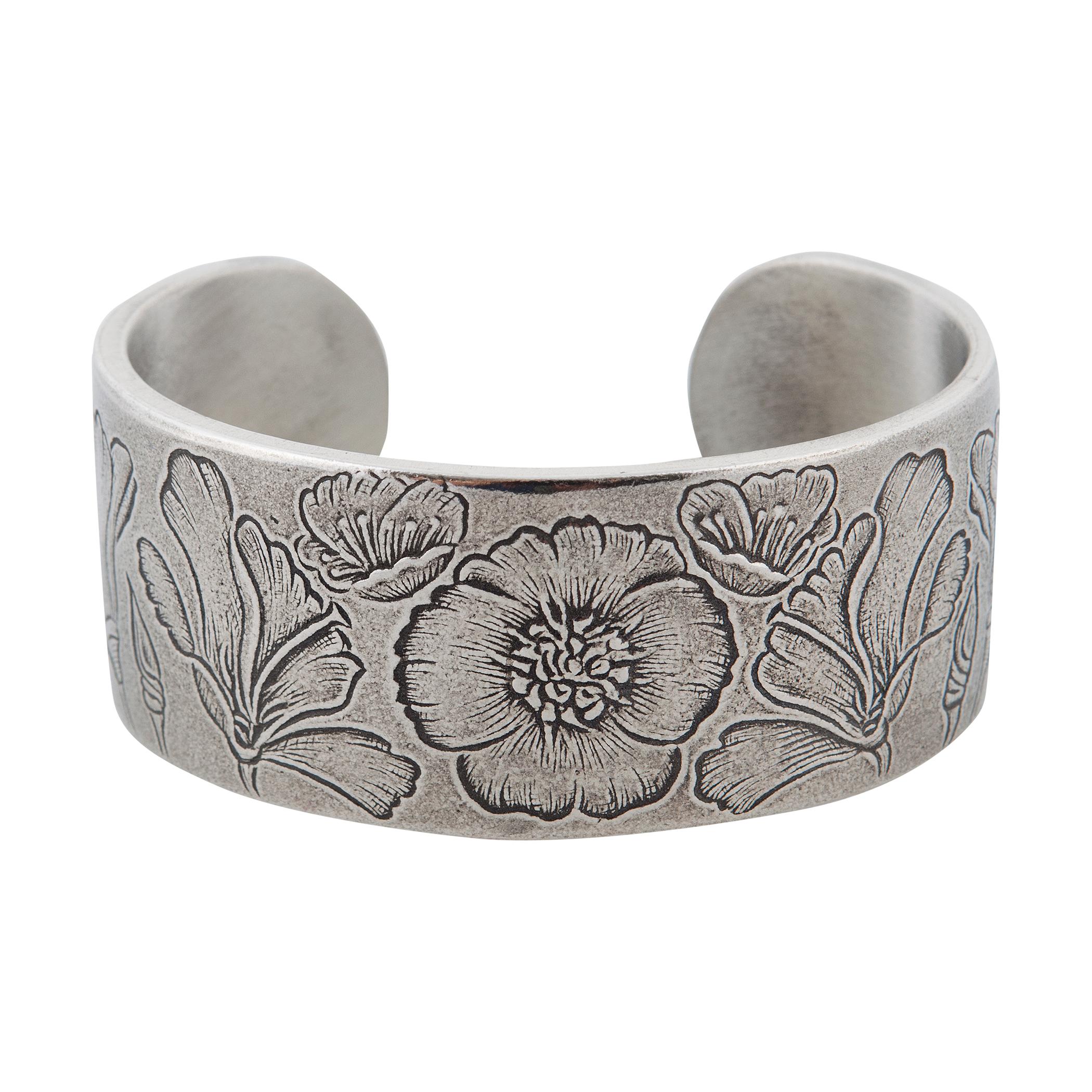 Say it with flowers. A Flower of the Month Bracelet from Salisbury Silver and Pewter is a wonderful way to remember your loved one on any momentous occasion. These uniquely handcrafted 1-inch cuff bracelets are made of lead-free pewter and feature the blossom that corresponds to the recipient's birth month or that symbolizes your dear one's personality and spirit. They also make meaningful personal keepsakes to honor graduates, bridesmaids, and mothers on their special day and are certain to be treasured and worn with great affection.
