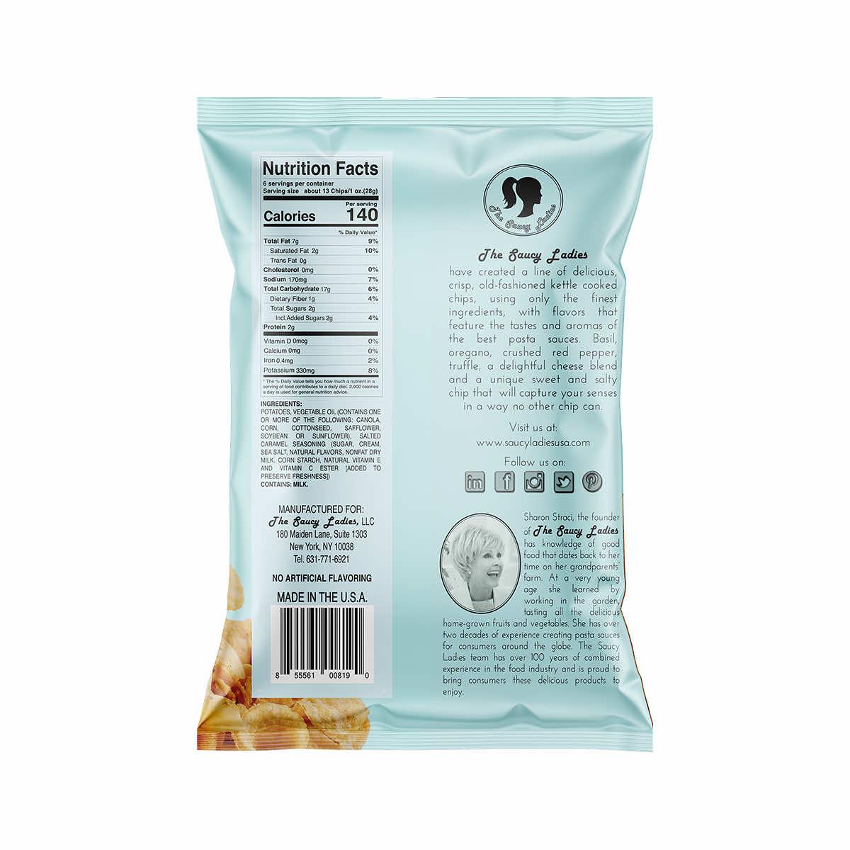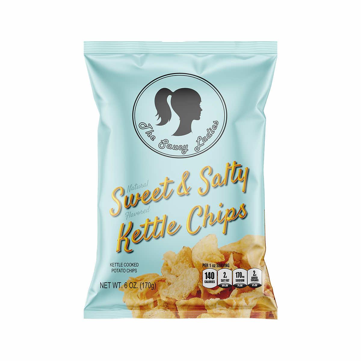 Open up a bag of the Sweet & Salty Kettle Chips from Saucy Ladies and enjoy a delightful snack of old-fashioned, kettle-cooked chips that will make your taste buds fall in love with every crunchy bite. The combination of sweet salted caramel and savory sea salt delivers a tasty blend that takes your snack cravings to a new level of deliciousness. These chips are perfect for on the go and are great for throwing a bag into the pack, lunch box, or briefcase for a yummy treat wherever you are!