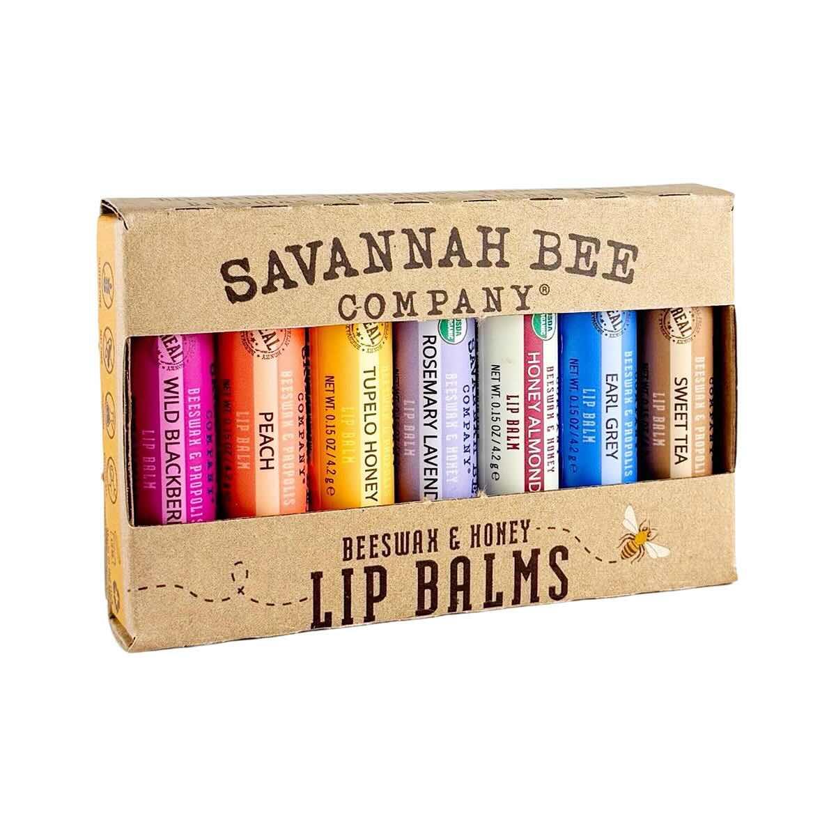 - Includes 7 lip balms: Tupelo Honey, Mint Julep, Earl Grey, Wild Blackberry, Key Lime, Sweet Tea, and Peach