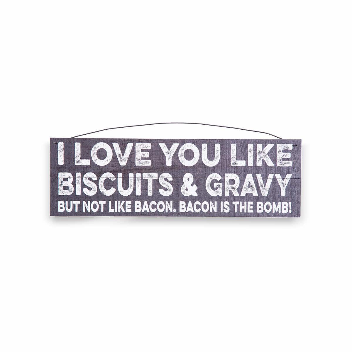 The I Love You Like Biscuits & Gravy Sign from Sawyer's Mill is a delicious and hilarious way to let your family know that they fill you up with love! Made of locally harvested hardwood in the great state of Tennessee, this handsome home decor will brighten any space with its fun image and high-quality construction. Unique and creative, this charming wooden sign is perfect for that Southern someone in your life!