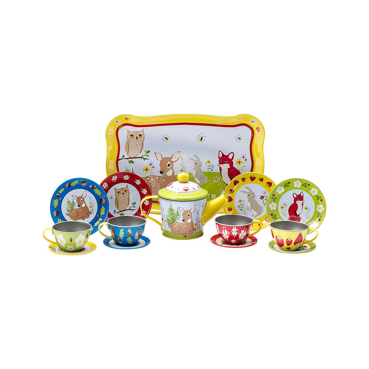 - Each saucer features a different forest friend like a dear, owl, fox, and bunny.