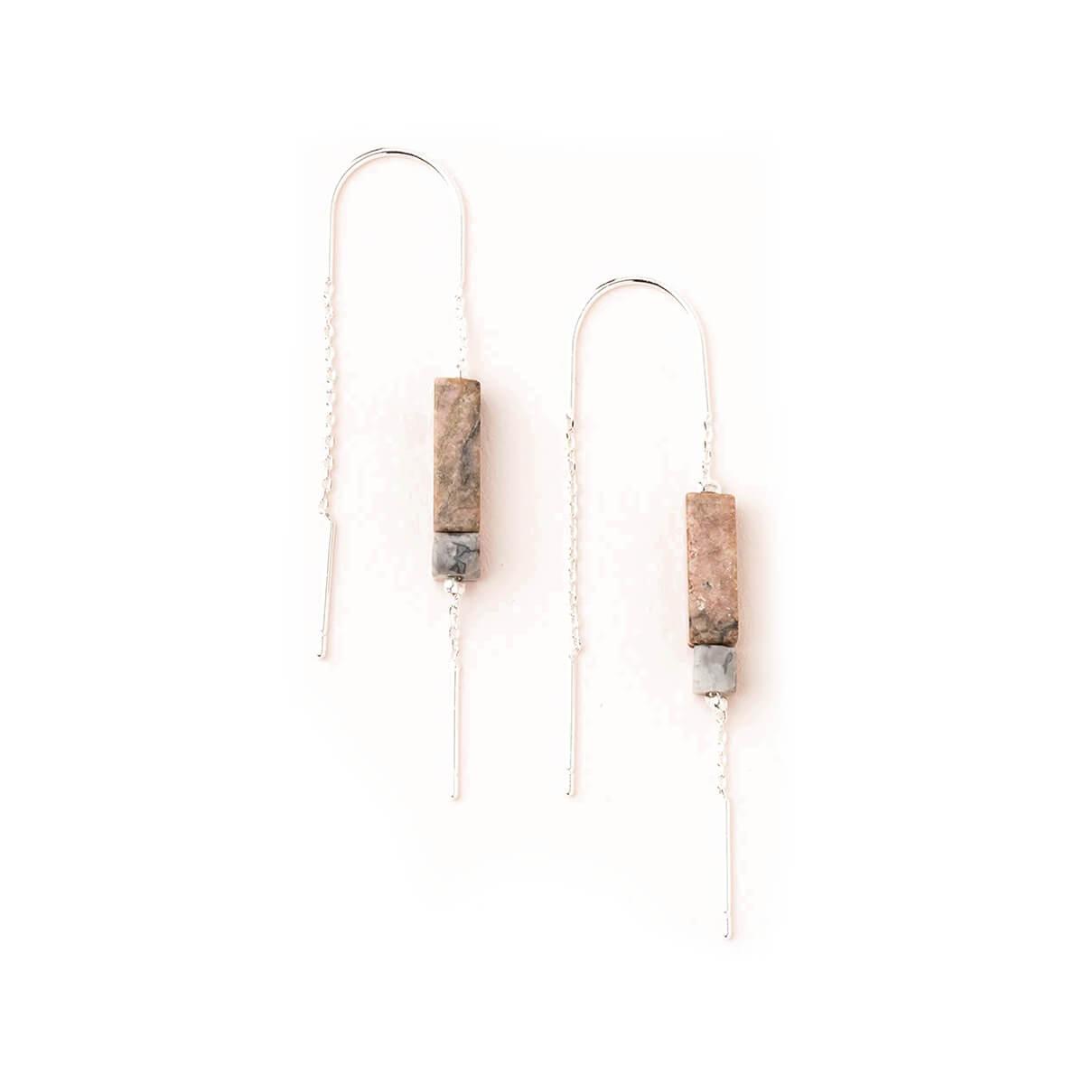 - Materials: 2.25-inch drop. Semi precious rectangle stones 1/2-inch and 3/16-inch. Sterling Silver dipped chain and wire.