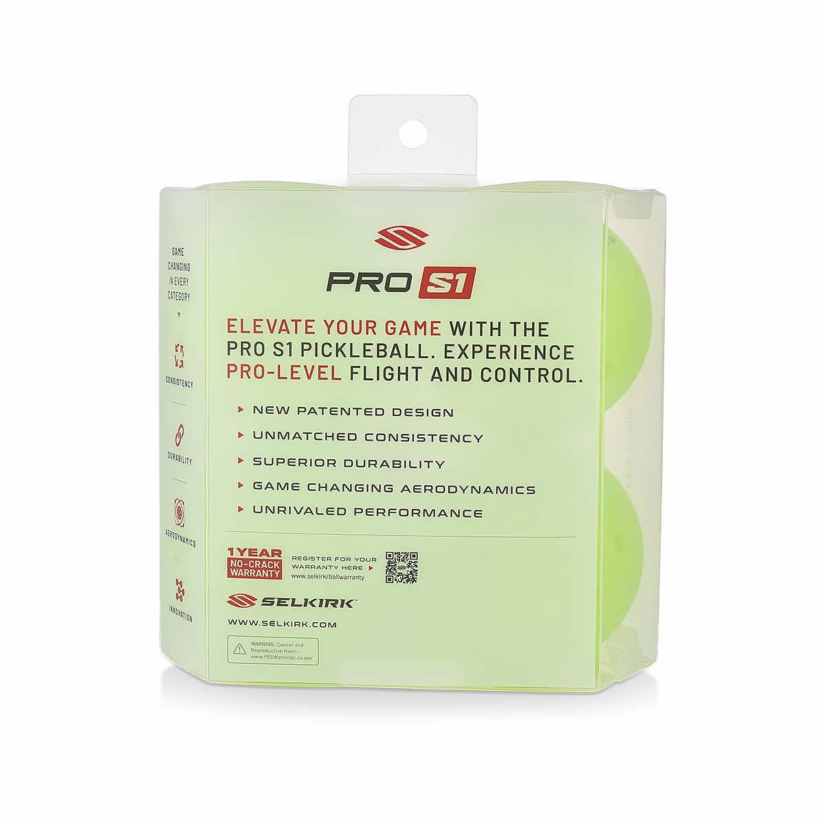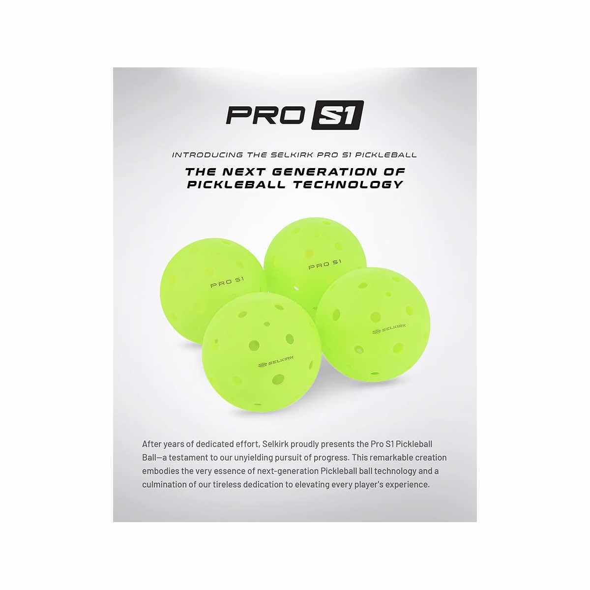 Elevate your game with the 4-pack of Pro S1 Pickleballs from Selkirk Sport. Experience pro-level flight and control thanks to a new patented design, unmatched consistency, and superior durability. The game-changing aerodynamics offer unrivaled performance to take your pickball game to the next level.