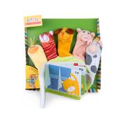 Let's make some noise! This hand puppet book lets baby find out how it sounds down on the farm with Old MacDonald and his barnyard of animal babies.They can interact with the textures and baby animal puppets during story time and enjoy the moo-ving saga of the old favorite children's song. Made of durable polyester that wipes clean with a damp cloth and air dries for easy cleanup, this book will soon become your and your child's favorite read.
