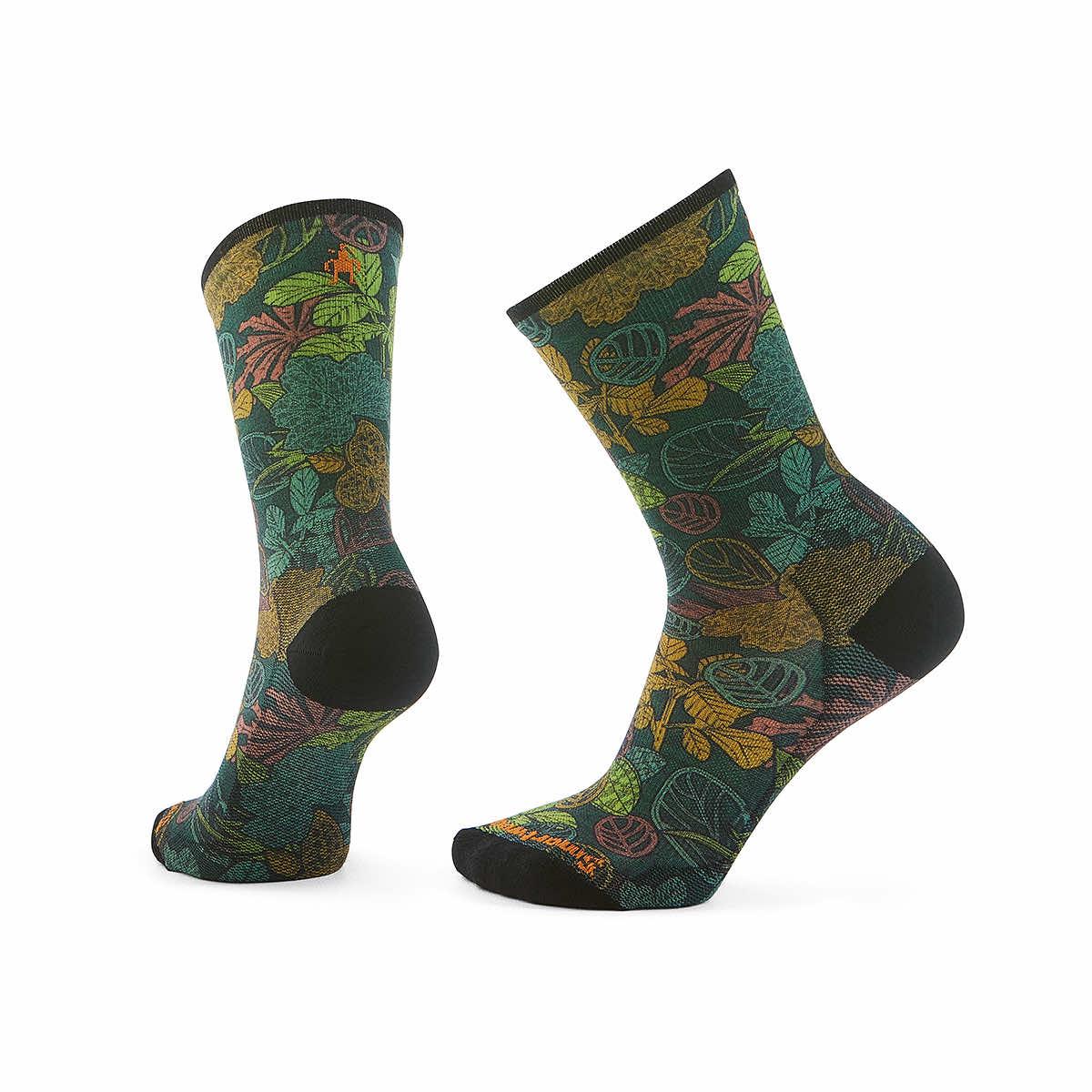 No matter how hard you pedal, the Men's Bike Aloha Forest Print Crew Socks from SmartWool can keep up! These wonderfully soft and comfortable socks are made from a squishy Merino wool blend that feels fantastic and has naturally anti-microbial properties to keep you fresher for longer. Designed to offer an incredible fit in your biking shoes, these performance socks have everything you need and nothing you don't. Step up your bicycling game with these excellent socks!