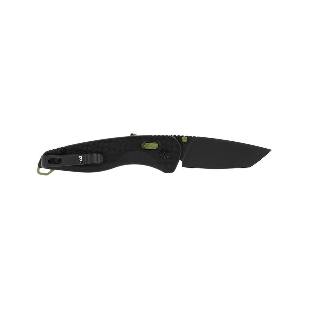 The Aegis AT Tanto from SOG is designed for outdoor users! This assisted opening knife features SOG’s innovative ambidextrous AT-XR Lock with an ergonomic handle and grip pattern for comfortable use. Aegis AT is a pocket knife that is easy to carry, with a highly functional 3.1-inch cryogenically heat-treated D2 steel blade. Its powerful XR locking mechanism also features solid built-in blade locking safety and spine-mounted safety system. The next evolution of the legendary Aegis folding knife.