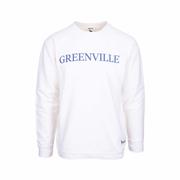 The Greenville Lauren Cord Long Sleeve Pullover from Southern Fried Cotton is made from a 100% cotton fabric with a bit of weight to keep you cozy while exploring the delightful area of Greenville, South Carolina. The cord-style material offers a comfortable style you can wear while sipping coffee on brisk mornings or roasting marshmallows around the firepit. The Greenville print, crew neckline, and thumbholes at the cuffs are a few features that make this top a favorite for layering up around the Bridge City!