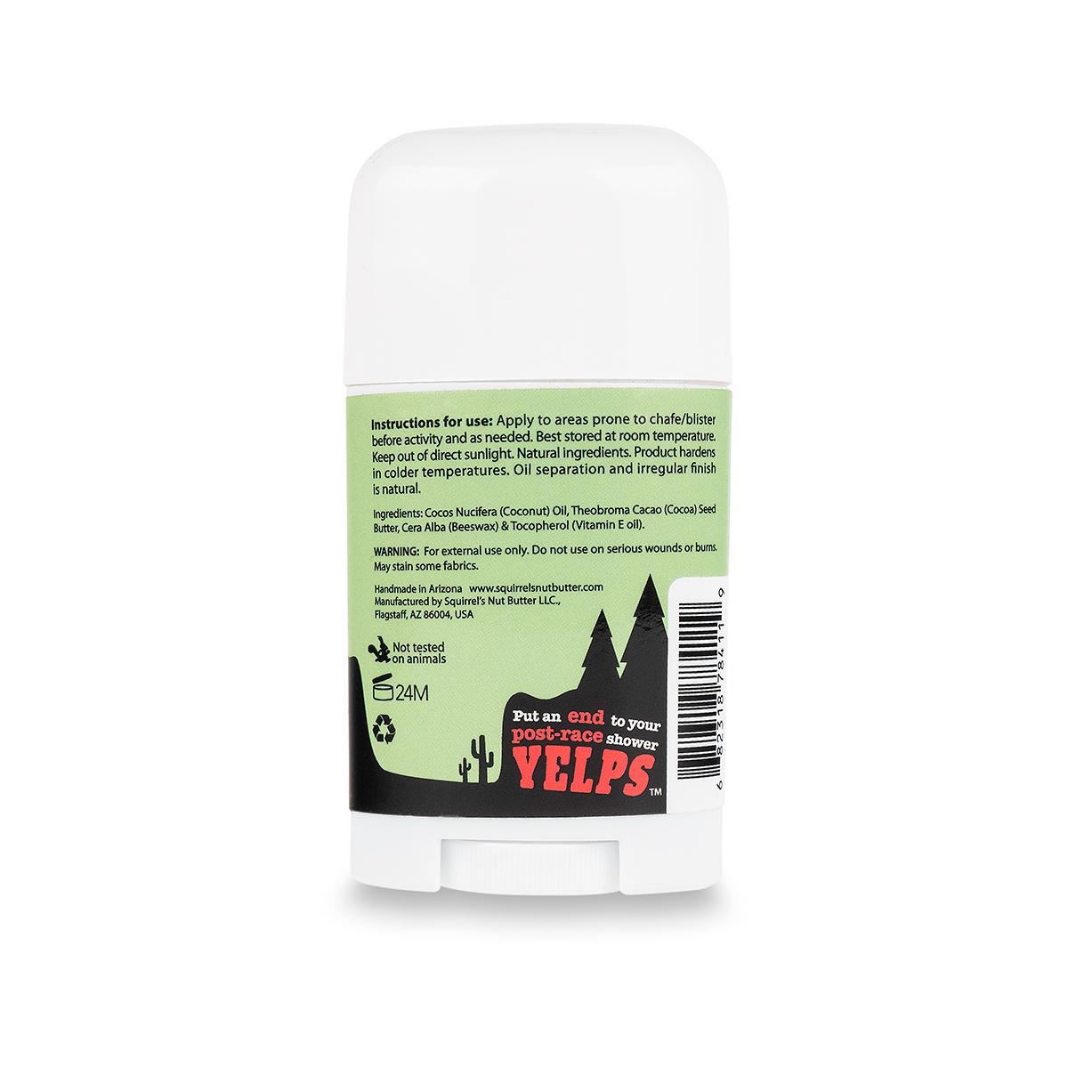 Protect areas of skin prone to chafing and blisters with the world's best all-natural, Anti-Chafe Stick from Squirrel's Nut Butter. Coconut oil and cocoa butter create a slick, lasting barrier on the surface of your skin to prevent rubbing and irritation. Beeswax makes the slick barrier effective and long-lasting as it holds the oil and butter in place to keep your skin moisturized and chafe-free. That's why the happiest squirrels butter their nuts!