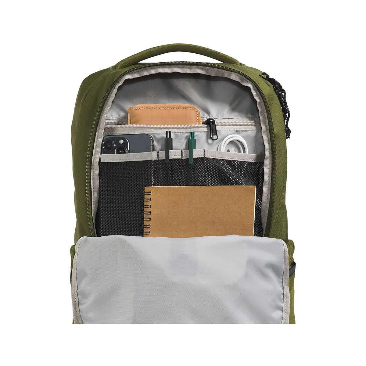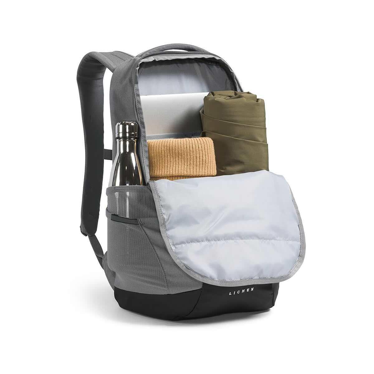 For days on the trail to trekking across campus, the Lichen Daypack from The North Face delivers a sturdy pack with functional organization, a versatile design, and calculated comfort for the daily commute or hiking adventure. The articulated shoulder straps and adjustable sternum strap provide important support with a just-right fit and feel. The two-way top zip closure opens up to reveal storage that will keep your essentials organized. The padded 16-inch laptop sleeve is great for taking projects on the go, while the internal zippered mesh pocket and other mesh drop-in pockets create a place for secure items and gear. This pack offers two water bottle pockets to keep your hydration close and handy. Tackle the trail or ace the exam with the trusty Lichen Daypack on your back!
