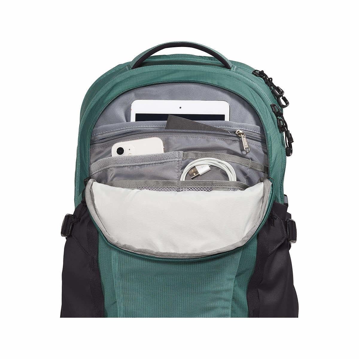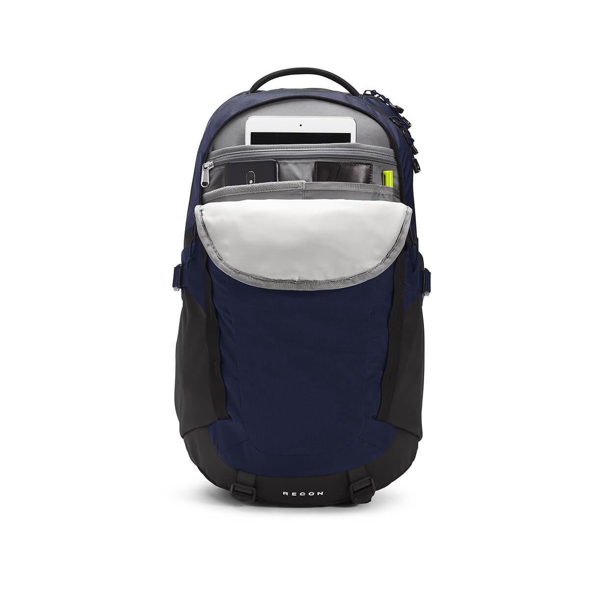 Not all of us can be secret agents, but The North Face sure makes us feel like one with the redesigned 30-liter Recon Backpack. Equipped with a padded fleece-lined laptop sleeve and hydration port, go ahead and set up a WiFi Hotspot to stay connected and hydrated on an all-night stakeout. With multiple fleece-lined media pockets, a mesh stash pocket, and an organization pocket located in and out of the pack you can keep all your electronics, gear, or spy equipment on the finger for quick access. A removable waist belt, whistle-enabled buckle sternum strap, and generously padded shoulder straps and back panel keep you comfortable and stable for sneaking in the shadows or just getting your books back to the library before their due date.