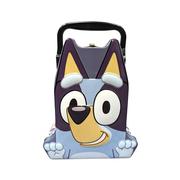 Let your little one's imagination run wild with the Bluey Head Shaped Carry All Tin from Tin Box! This charming tin lunchbox is shaped like everyone's favorite Blue Heeler pup with a sturdy handle and latch to contain any number of snacks or treasures. Your child will be enamored with this adorable and high-quality tin carry-all!